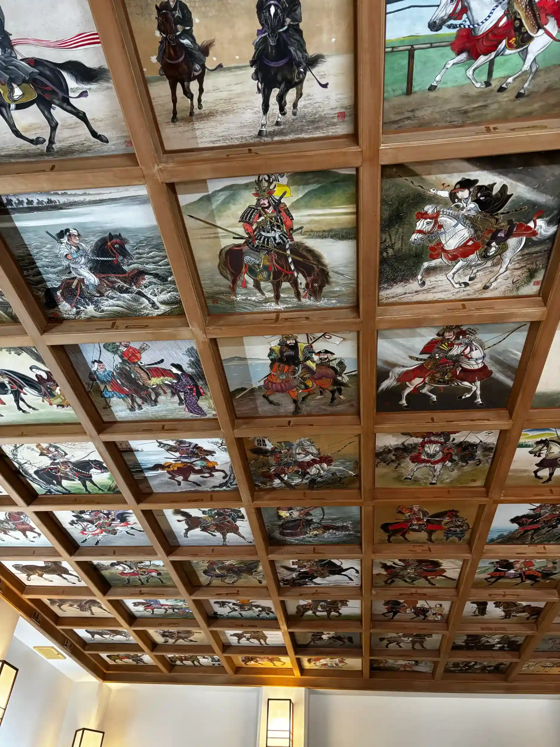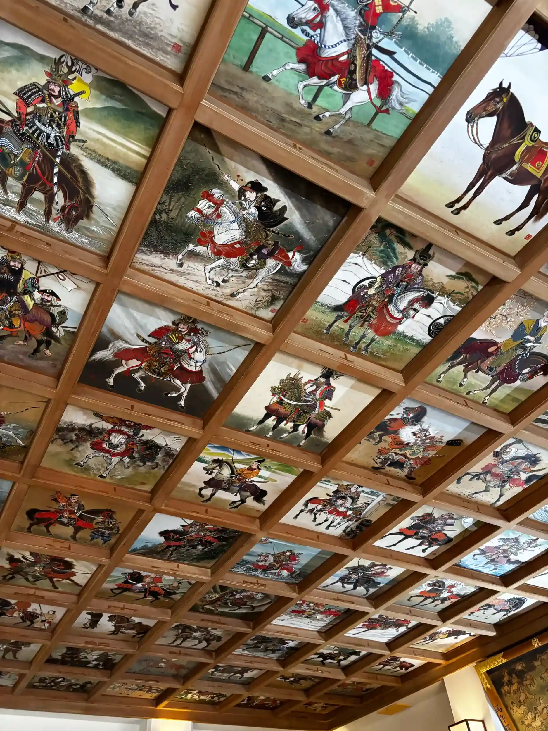 拝殿内に失礼しまして上を見上げると100枚の天井絵馬!その素晴らしさに思わず「おぉ」と声がもれてしまいました🫢