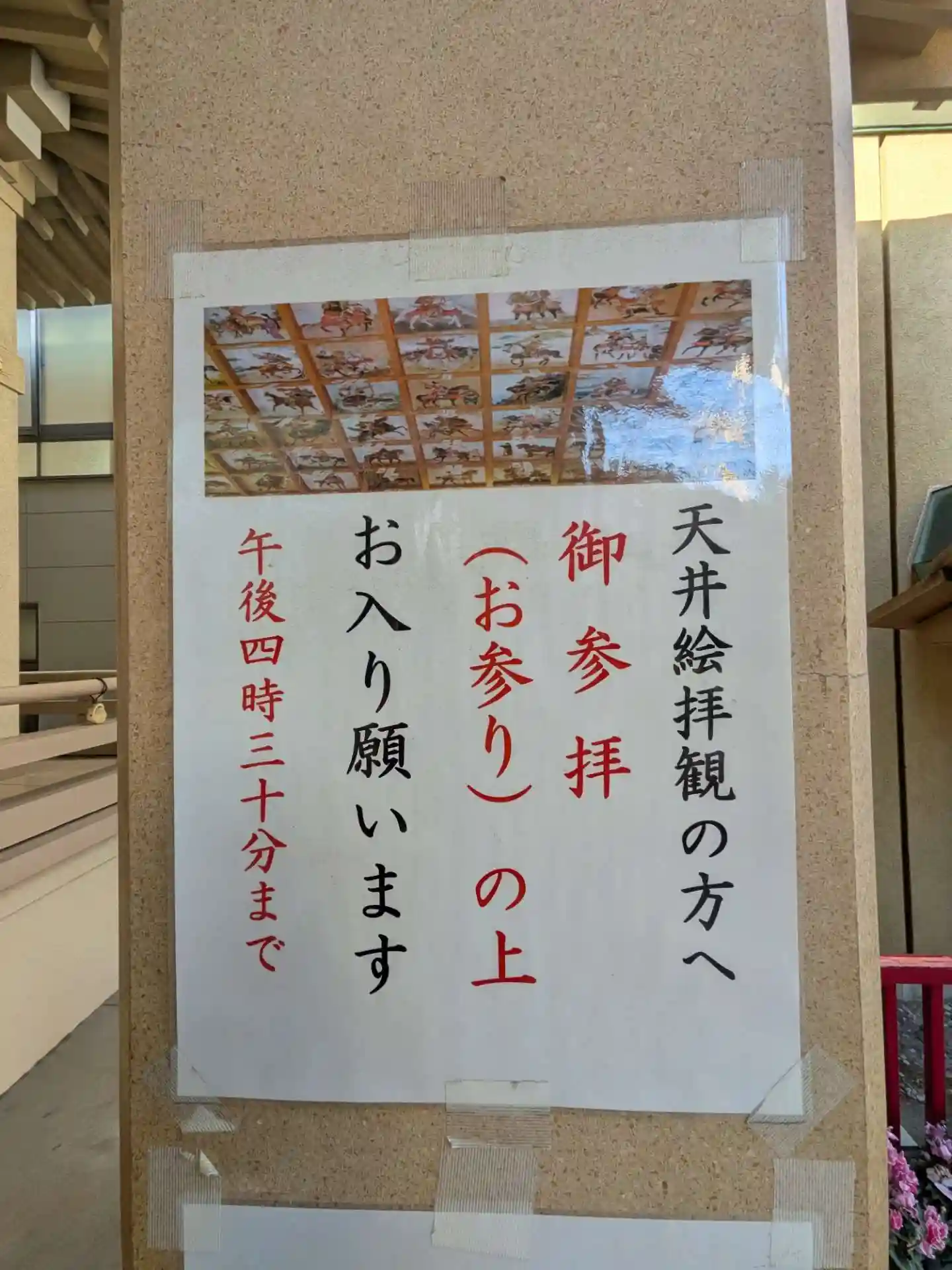 天井絵は、二組の方が見られていて、昨年拝見したので、今回はお参りのみです。