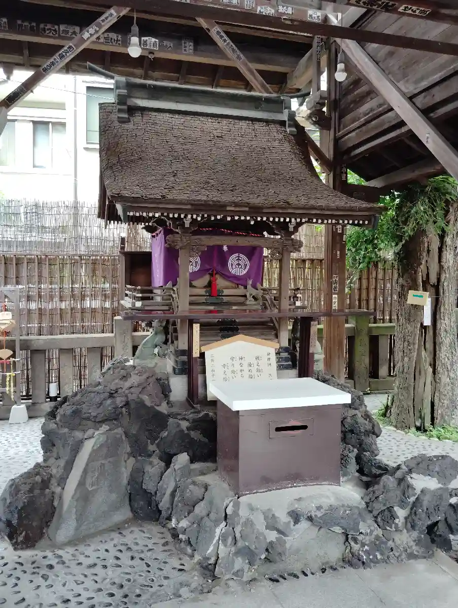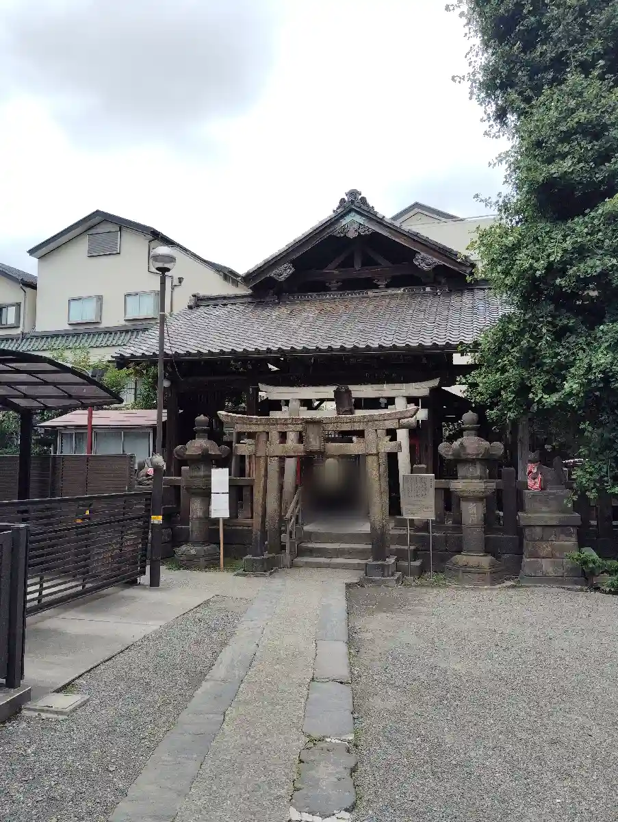 また、お社は安政二年に創建されたもので、一間社流造といわれております。社殿は杉皮葺で、創建以来のものであり間口1.5メートル、奥行約1.4メートルと小さいが、覆屋を構えて保護しています。覆屋は大正期の建築物でしょう。また、社殿は先の関東大震災、東京大空襲にも奇跡的に焼け残った大変貴重な建築物です。
