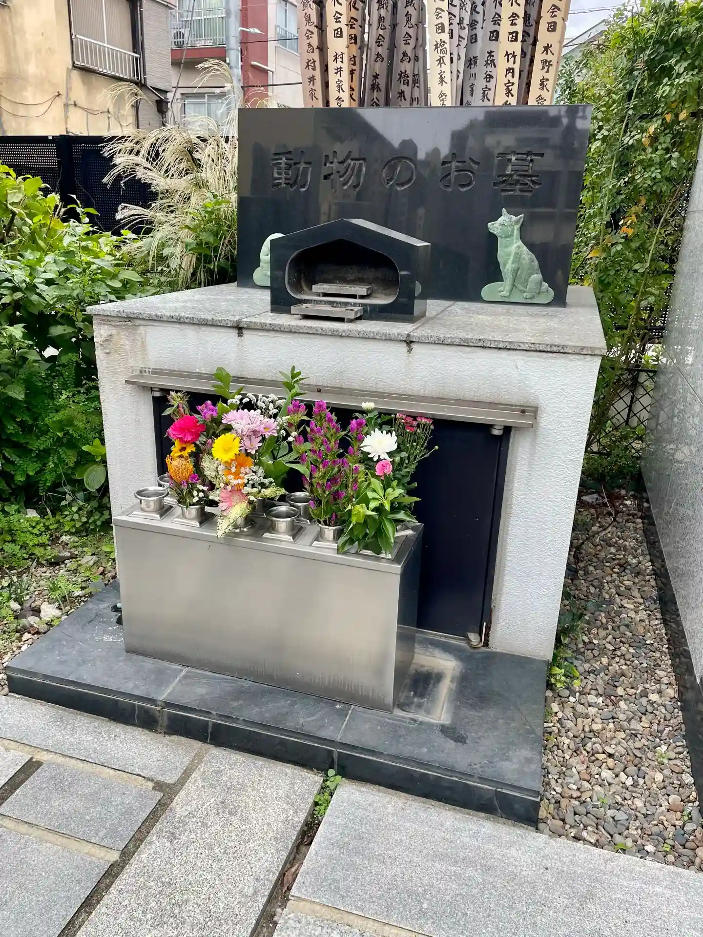 第二次世界大戦中の空襲により、堂宇は焼失しましたが、その後、地域の人々の協力のもと、1986年に本堂、1989年には本尊が再建されました。本堂内には、中国敦煌画家高山氏による荘厳な壁画や、京仏師石川恵観氏創作の「二十五菩薩像」が飾られ、訪れる人を魅了します。