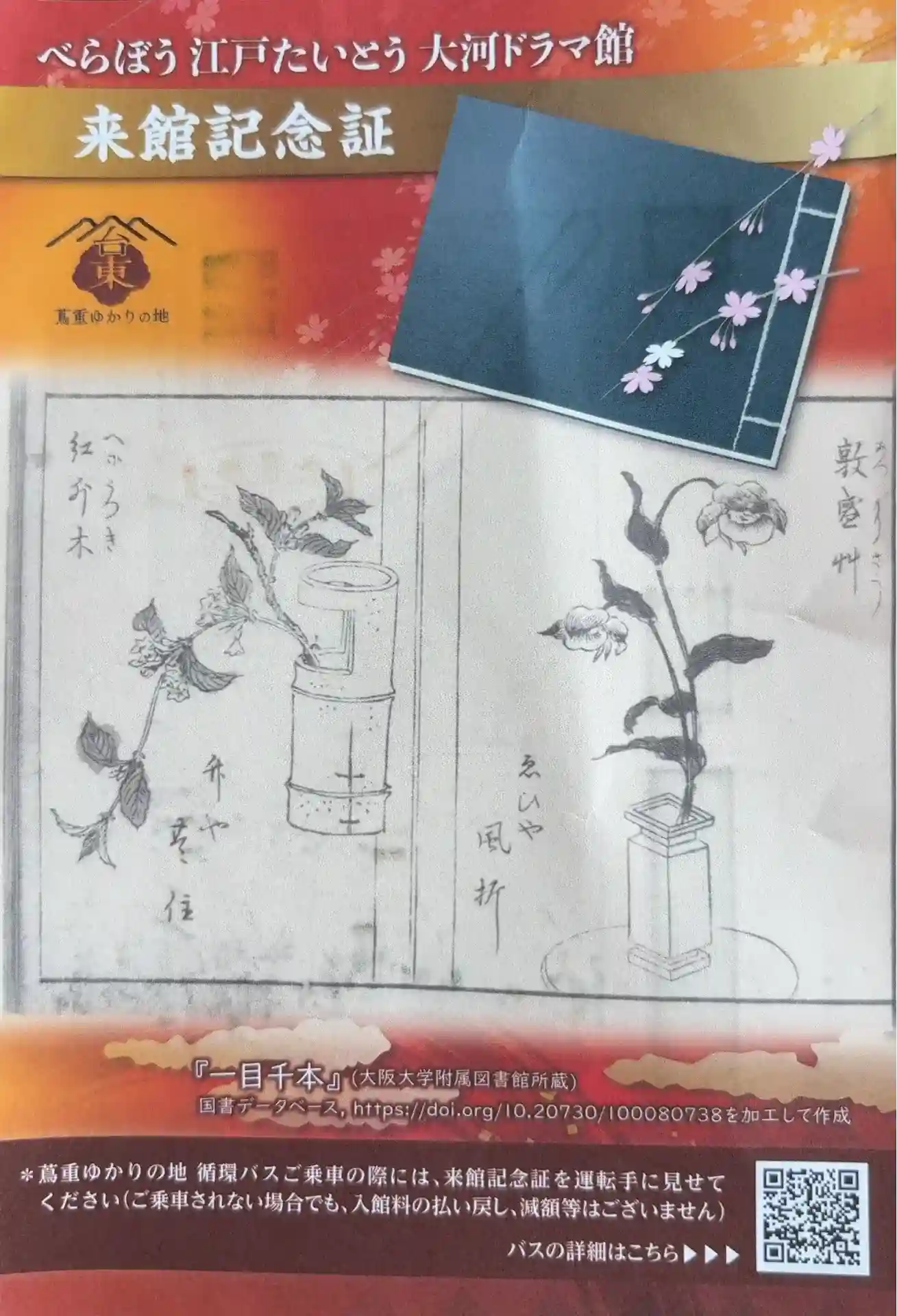 でね、この来館記念証みせると、べらぼう所縁の地を循環するバス🚌に無料で乗せてもらえるの。