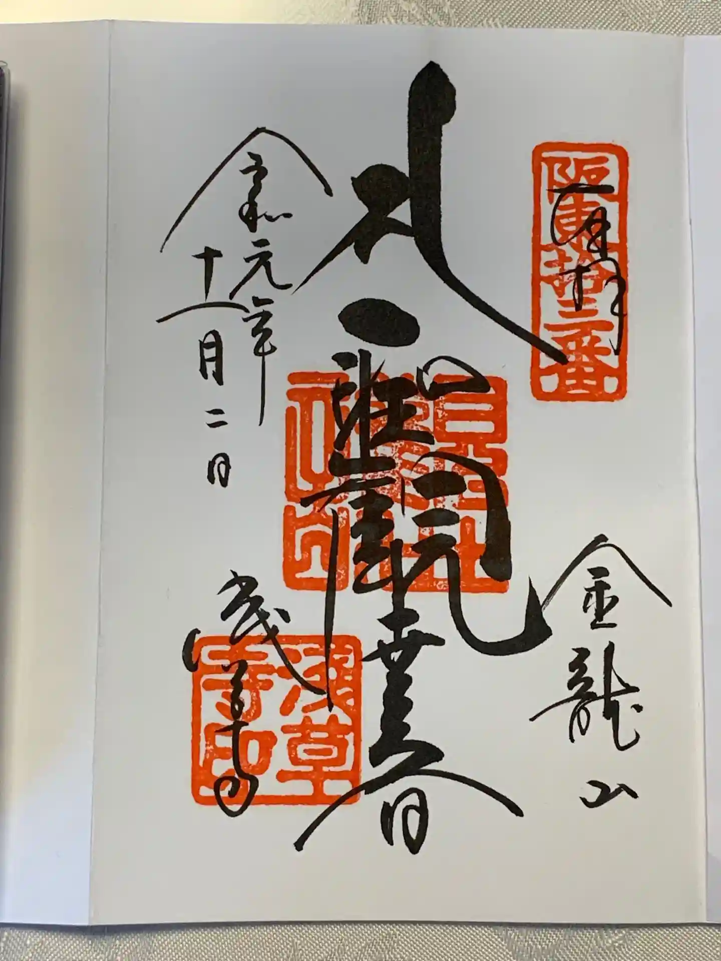御朱印帳を預けると番号札をもらうが、そのままお堂の中で待ってるように案内あり。人は多かったが10分程度で取得。値段は300円。