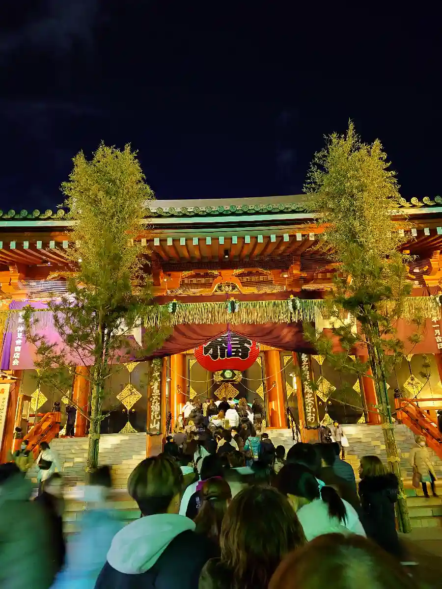 浅草公会堂に行った際、お参りをいたしました。昼間は人が多く、なかなか進めなかったのですが、夜は何とか無事参拝できました。夜の浅草寺、美しかったです。