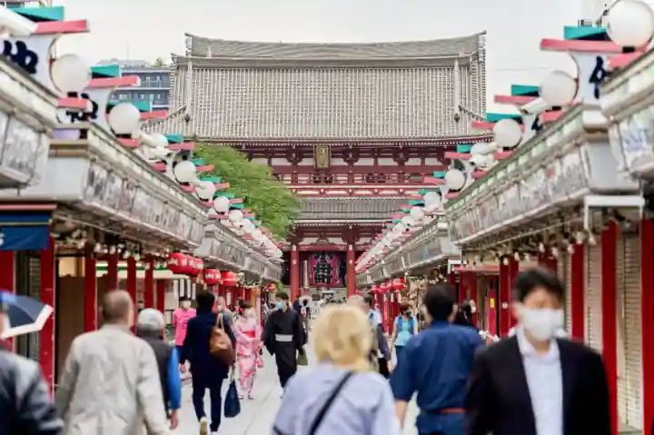 赤い大提灯が特徴的な浅草寺の総門は、雷門の名で親しまれる東京有数の観光名所です。