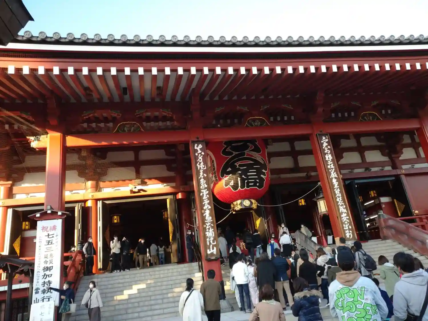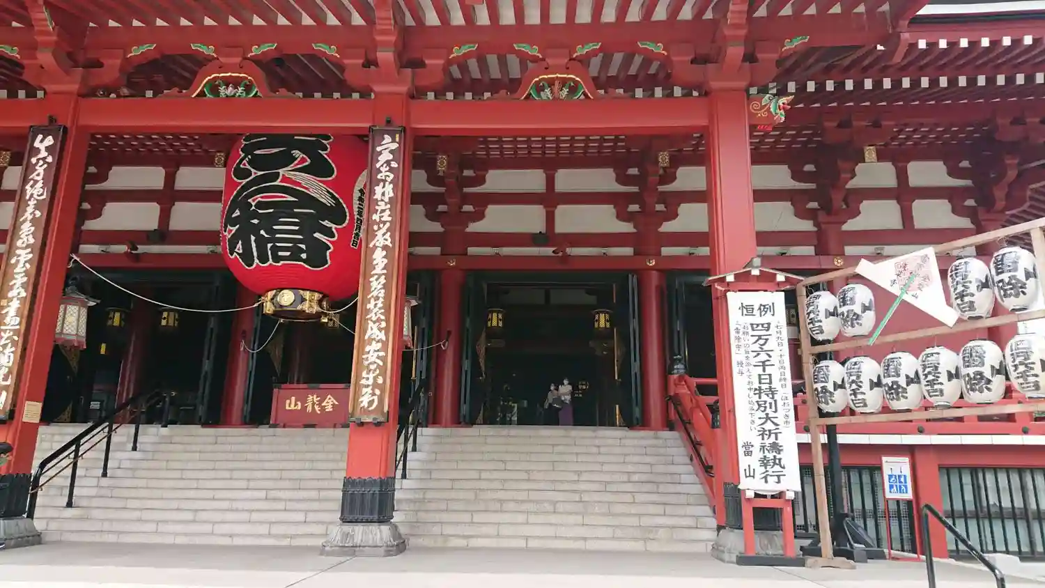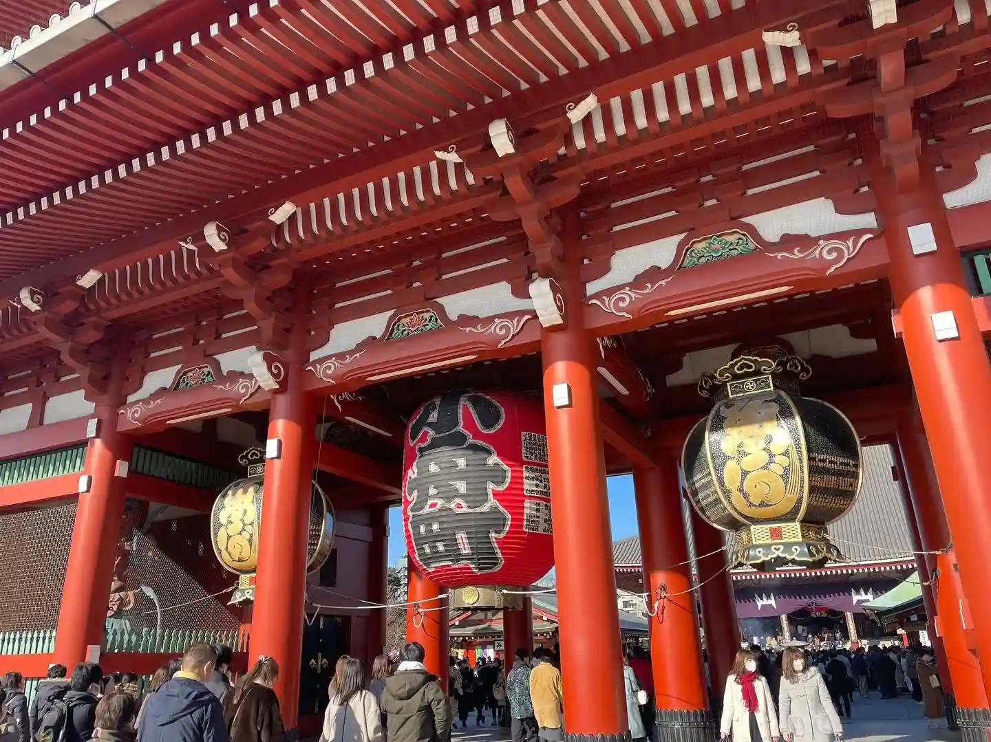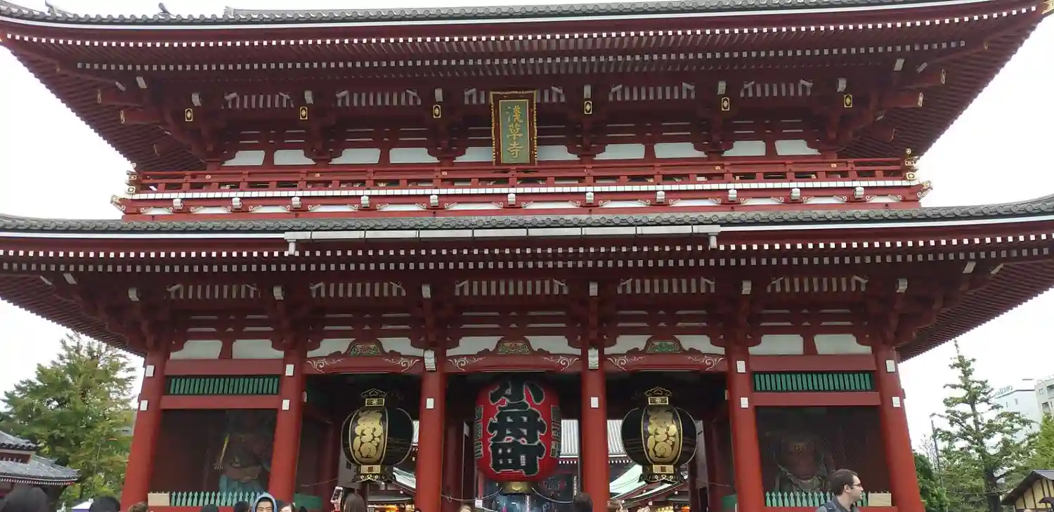 雷門をくぐり仲見世を抜けた先にある山門。