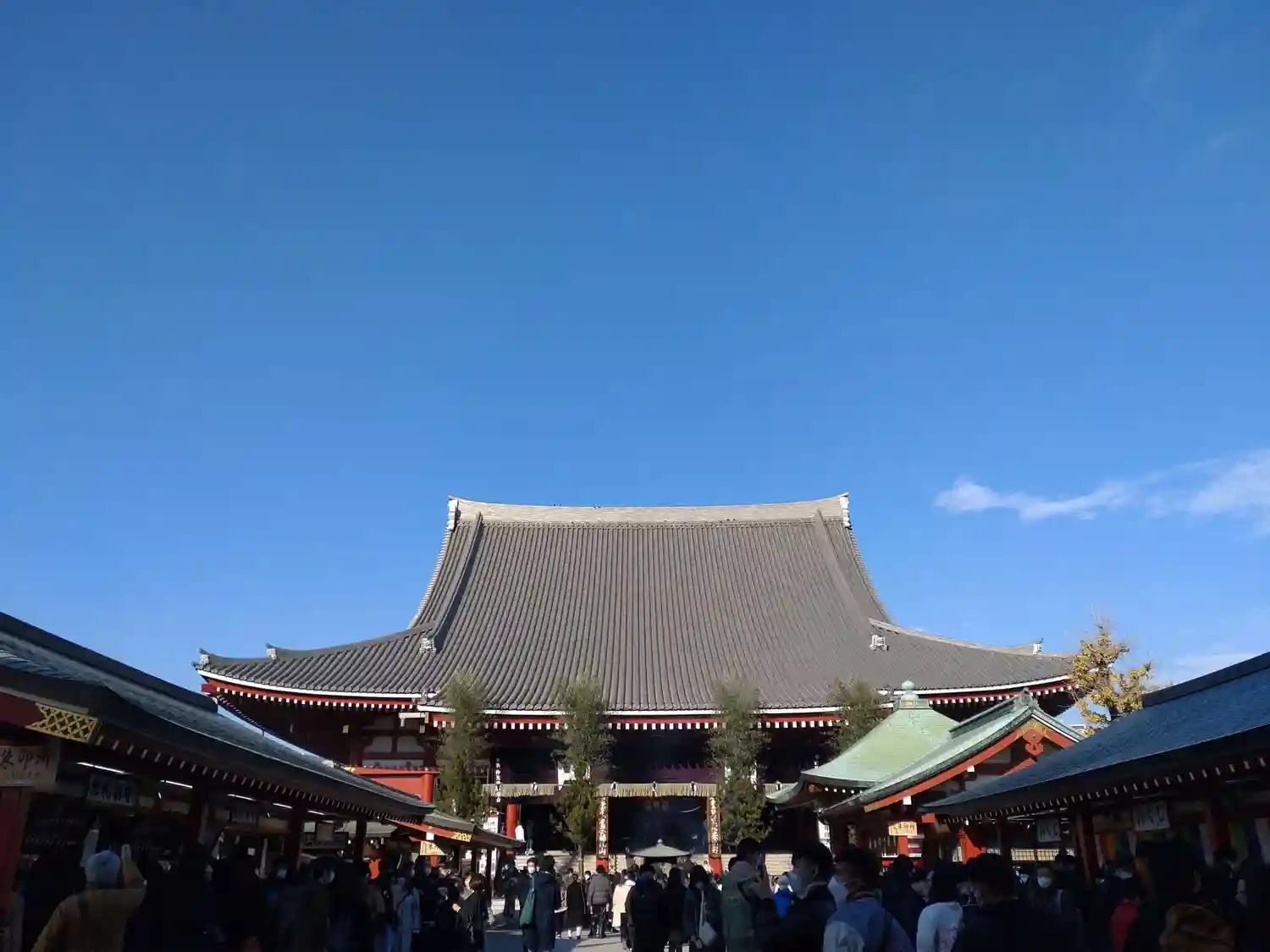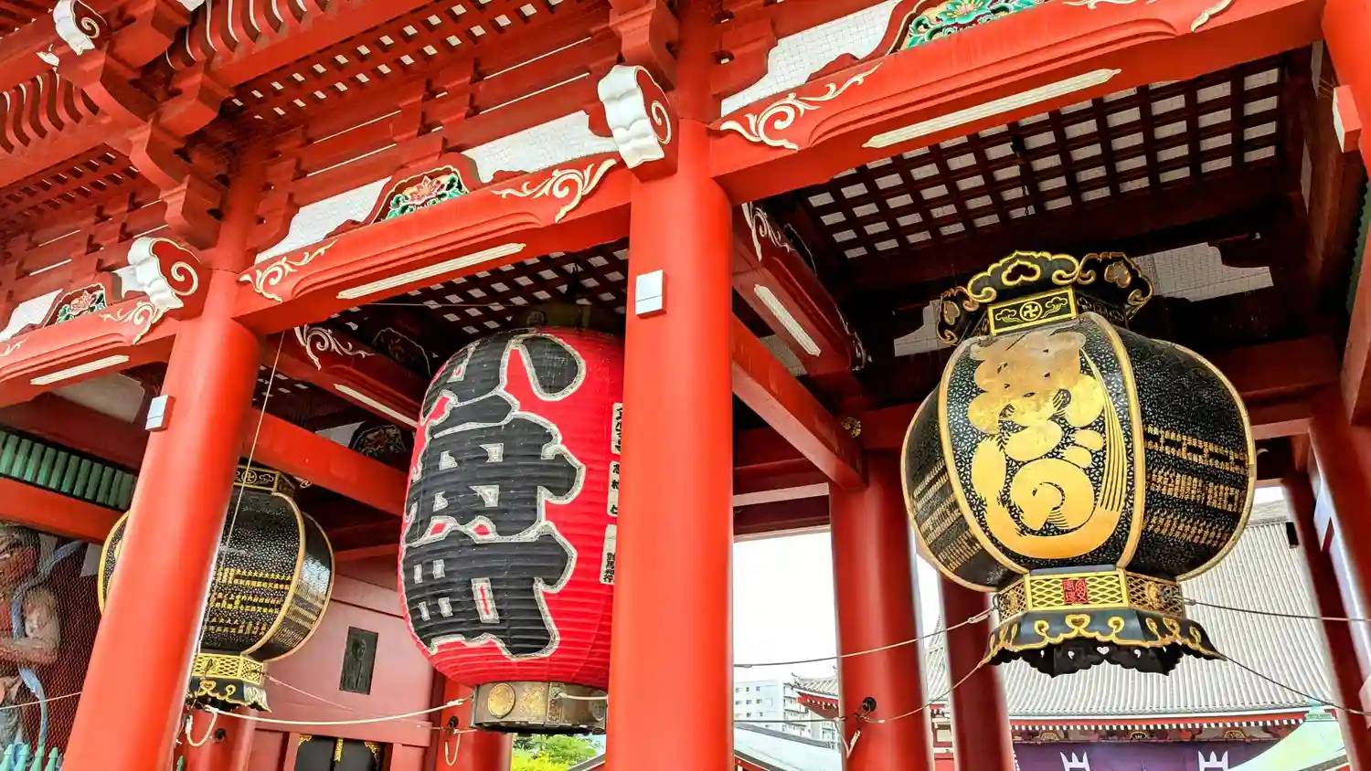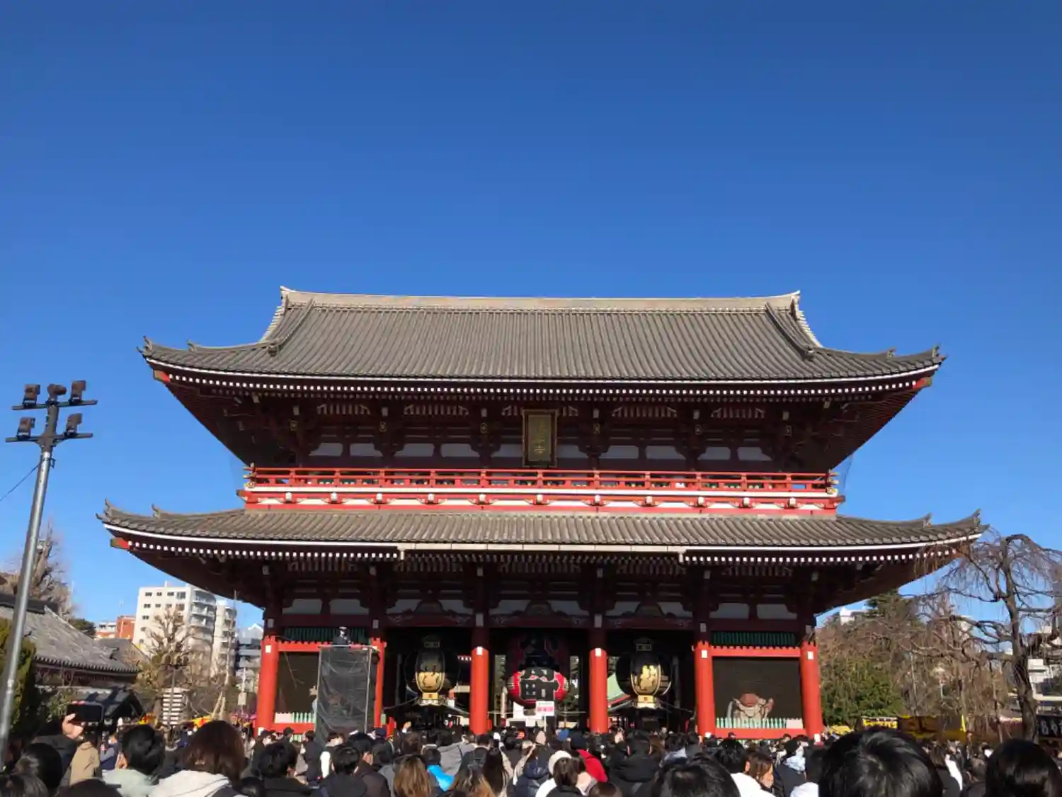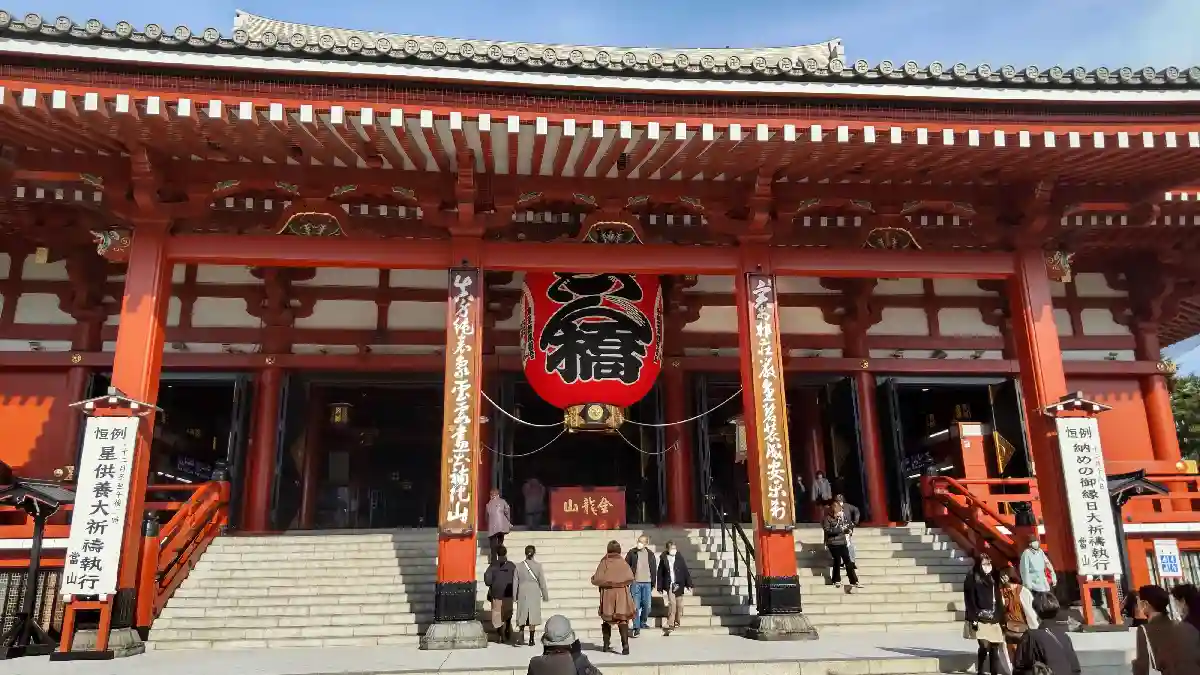 雷門をくぐり仲見世を抜けた先にある山門。