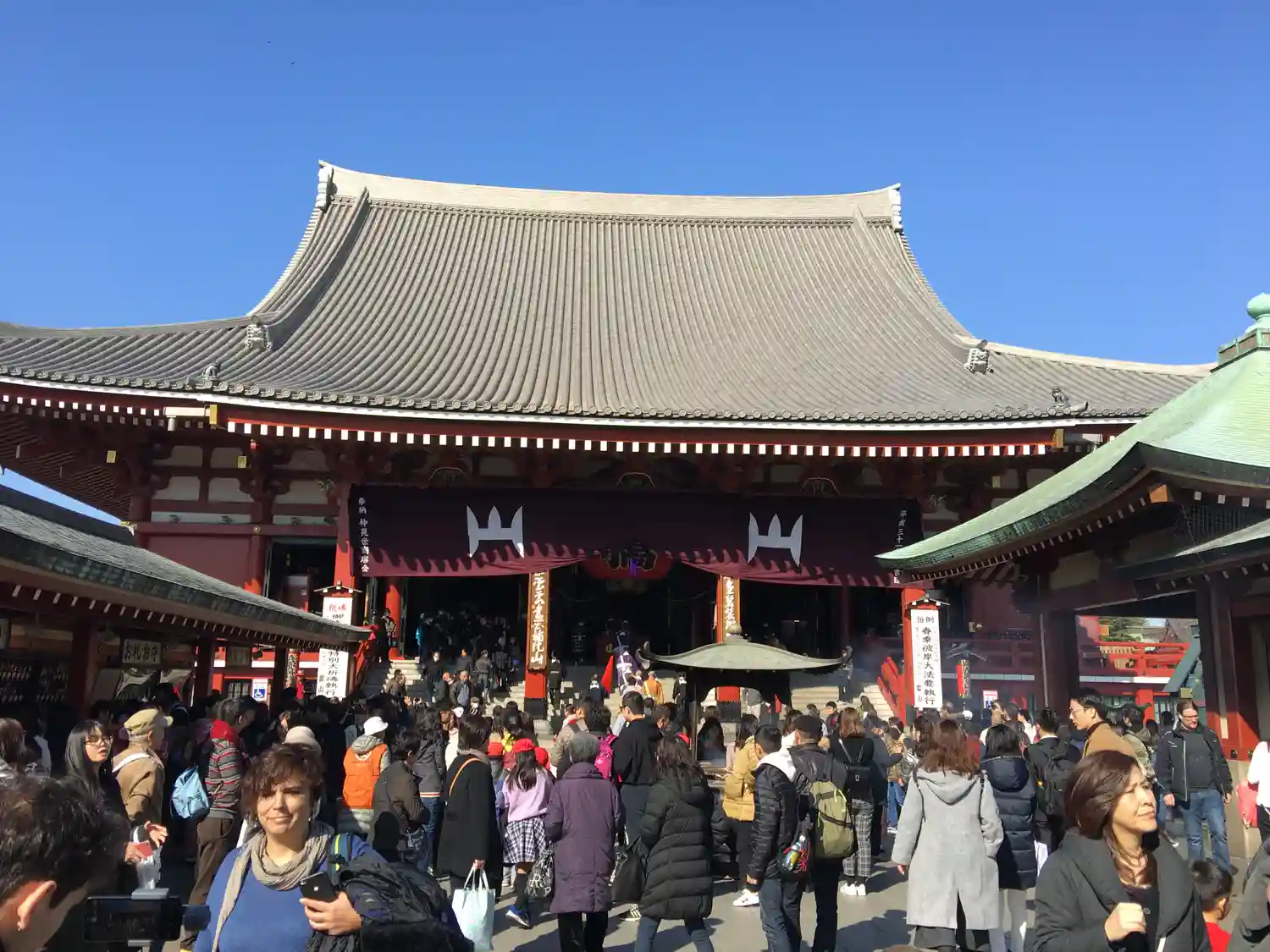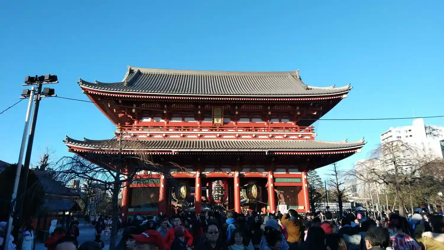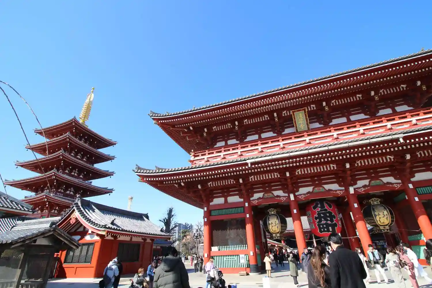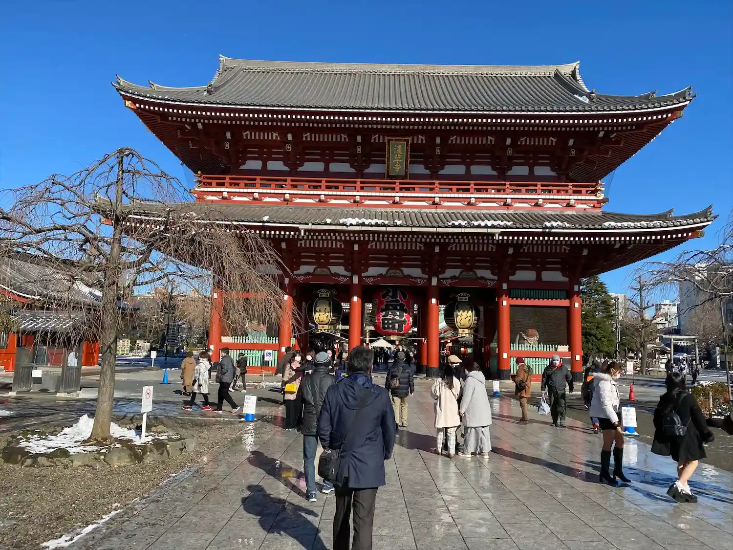 雷門をくぐり仲見世を抜けた先にある山門。