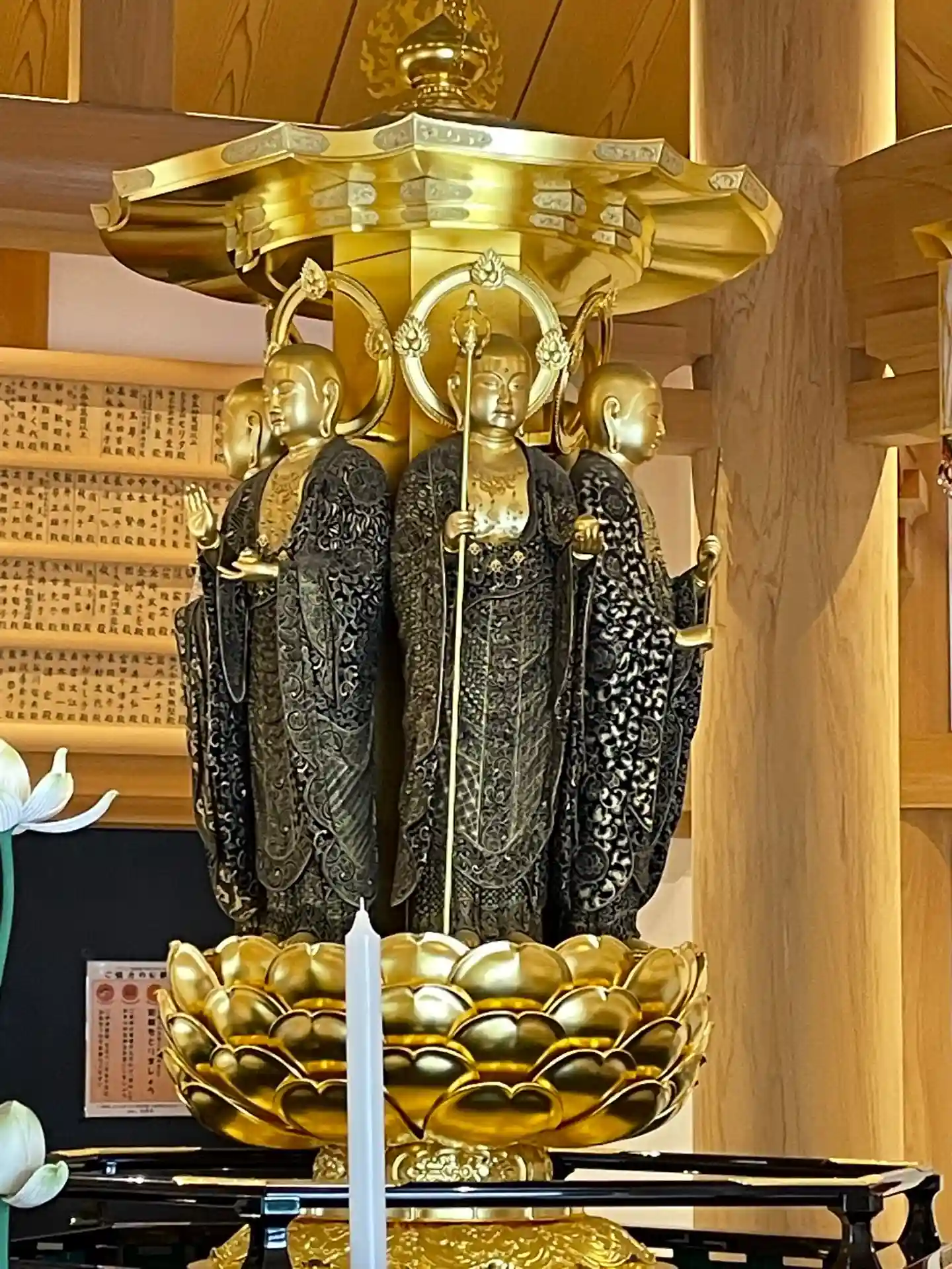 内陣の須弥壇中央では聖観世音菩薩、左右に千手観音、虚空蔵菩薩、文殊菩薩、普賢菩薩、勢至菩薩、大日如来、不動明王、阿弥陀如来が、