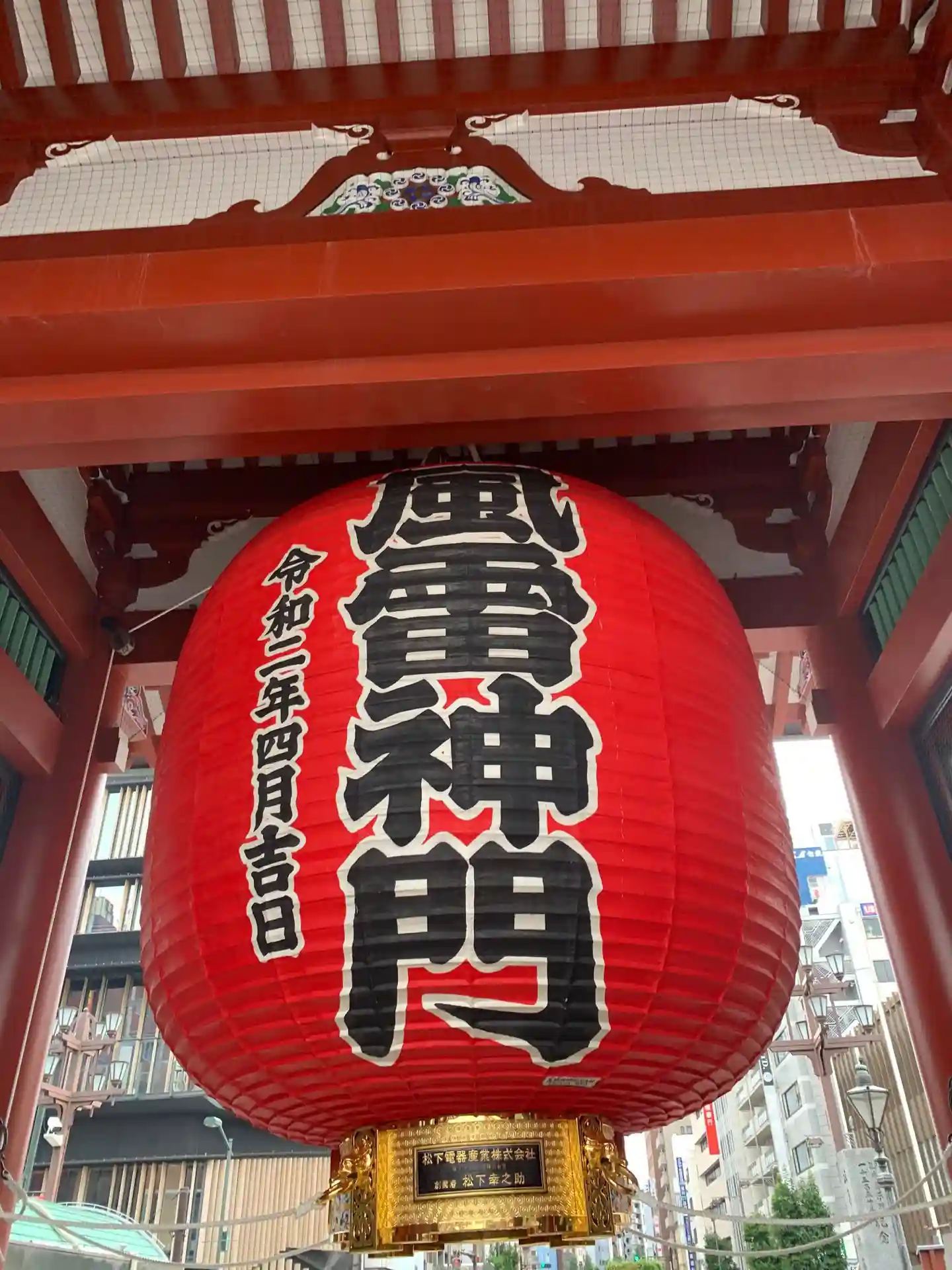 現在の雷門は昭和35(1960)年に松下電器産業(現パナソニック)創業者の松下幸之助によって寄進されました。