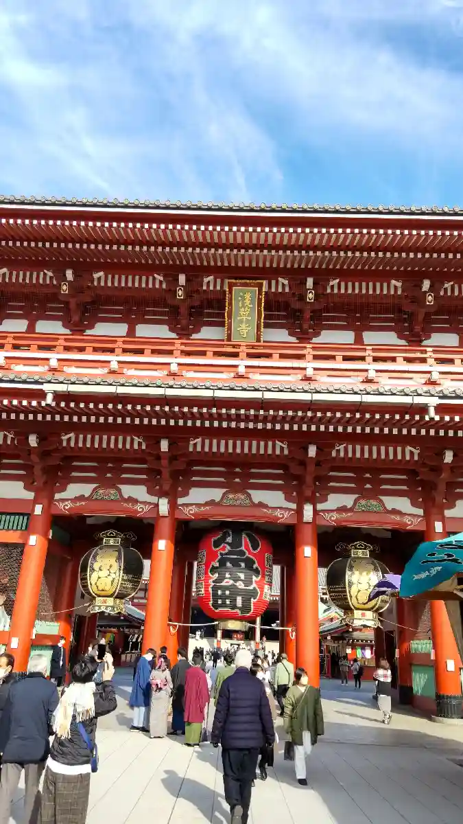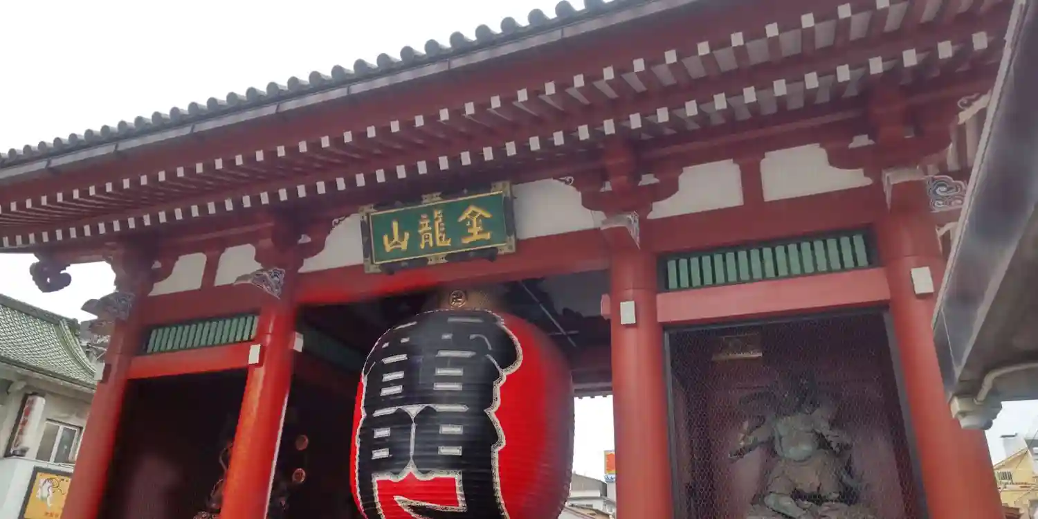 赤い大提灯が特徴的な浅草寺の総門は、雷門の名で親しまれる東京有数の観光名所です。