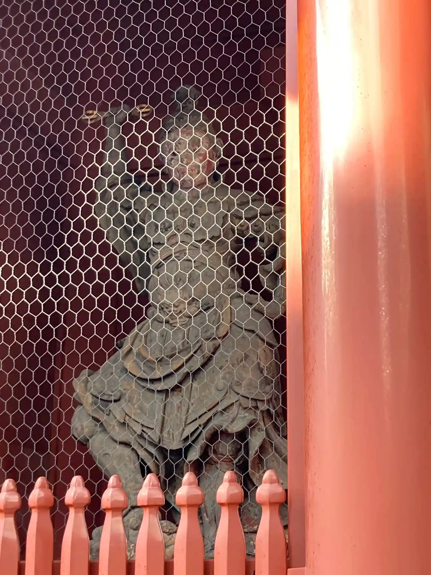 国の重要文化財に指定されている、本堂の東にある朱塗りの美しい門。
