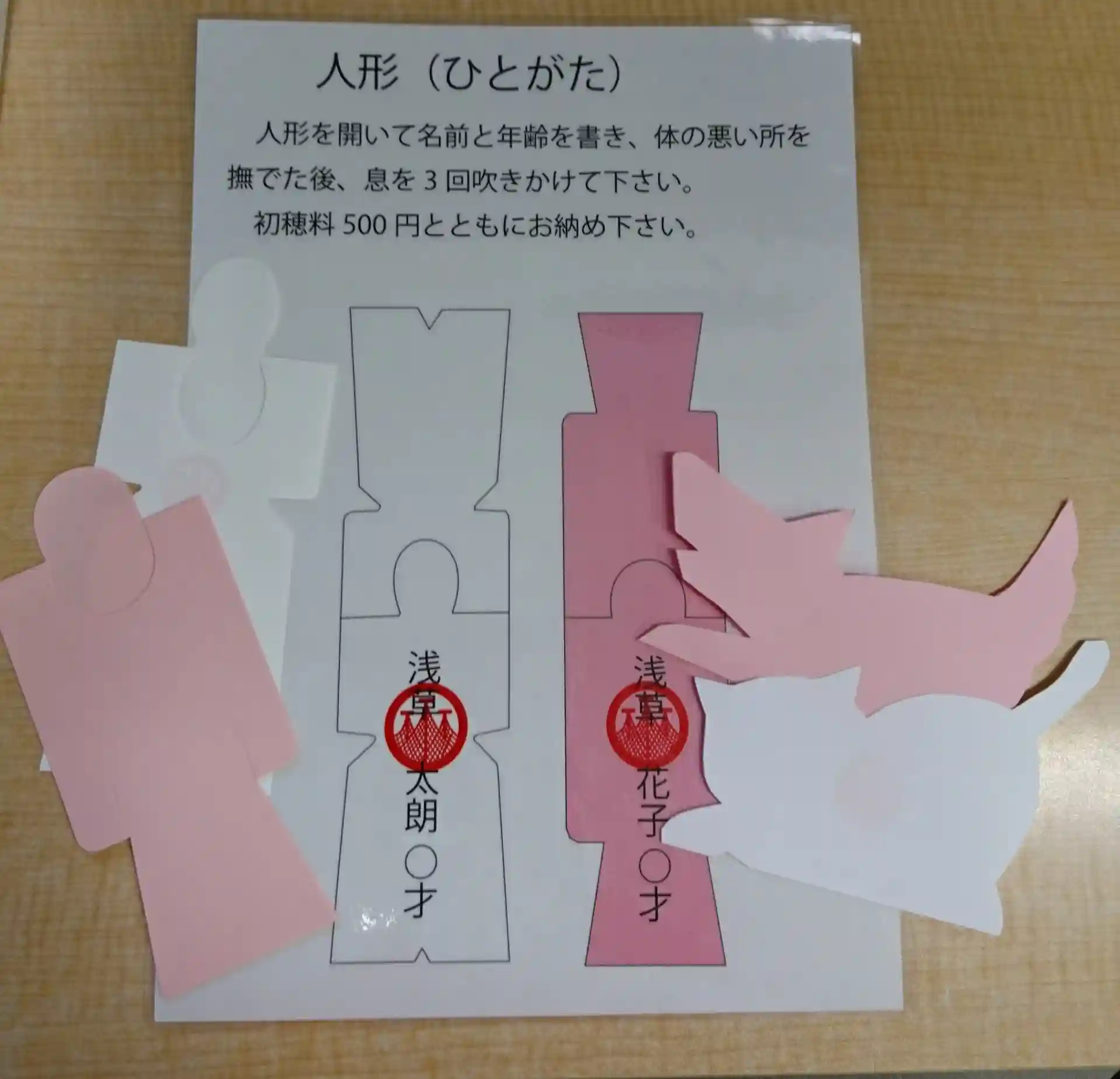 初穂料(500円)をお納めの上、白い箱から人形をお受けになり、