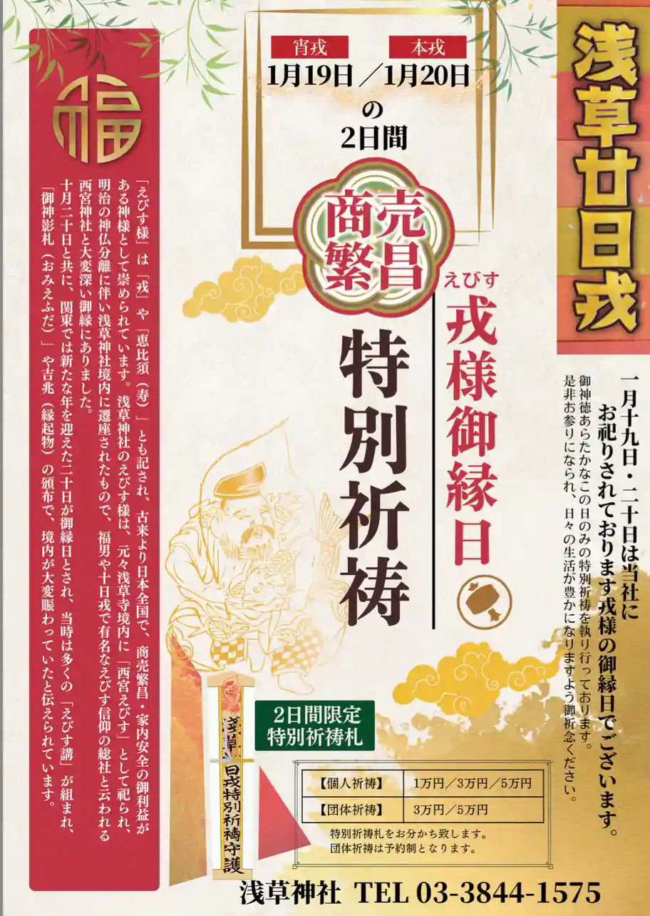 浅草神社では、令和元年より廿日戎を開催しております。