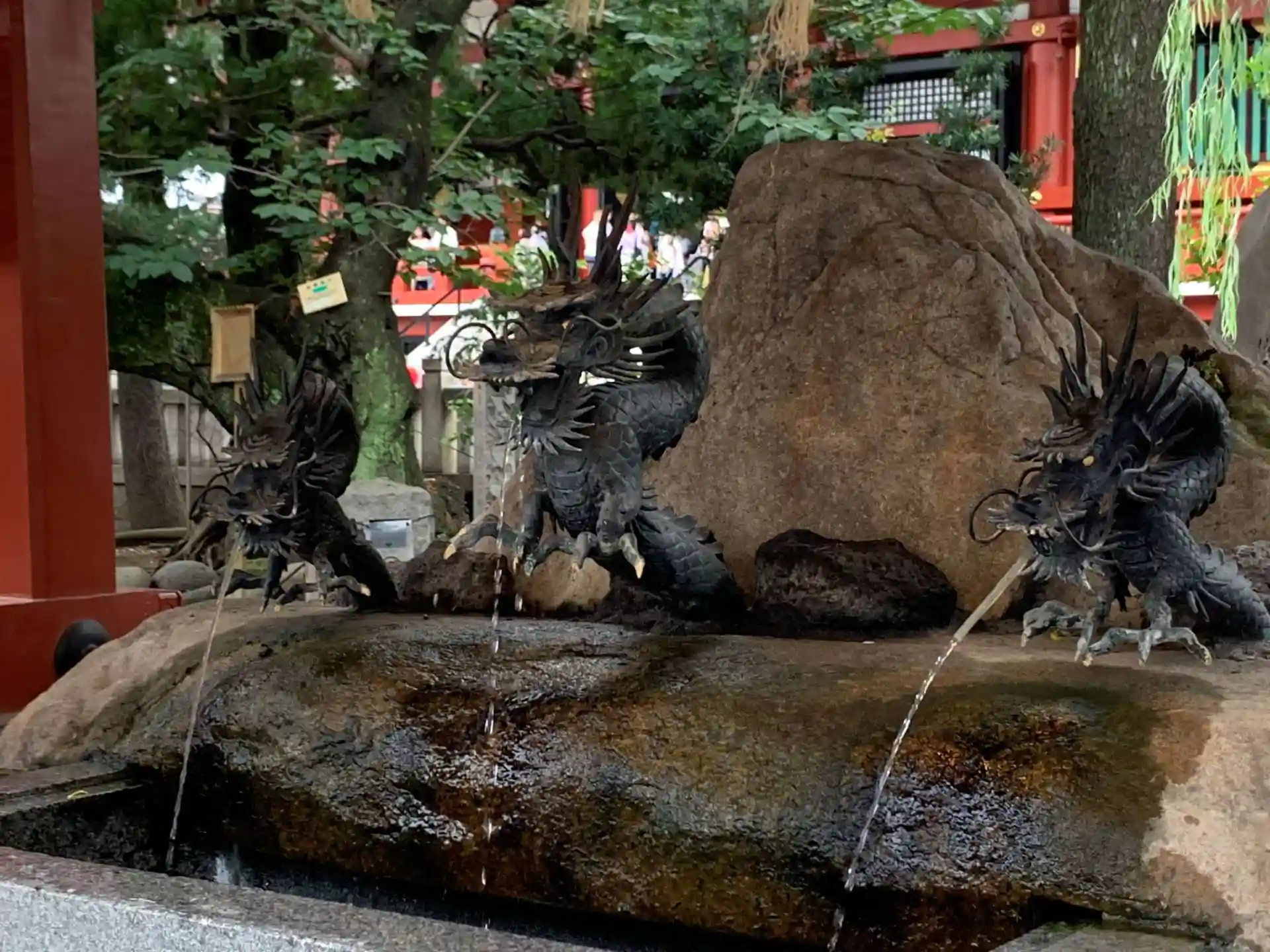 ここの手水舎は、龍が3頭もいました