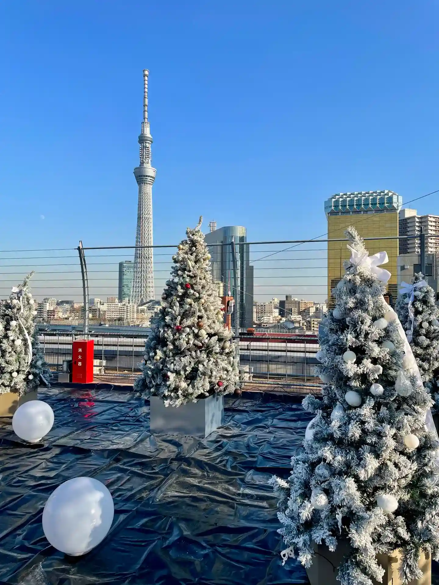 お参りした日は天気がよく、「ハレテラス」の名前の通り、東京スカイツリーが正面によく見えました。反対側には浅草寺の五重塔や本堂も見えます。