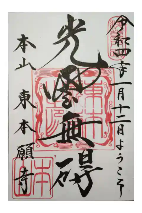 御朱印(巡拝印)の「光雲無碍」は、仏の光明「仏の知慧」「摂取の光明」が雲のように世界をおおい、あまねく照らす事だそうです。
