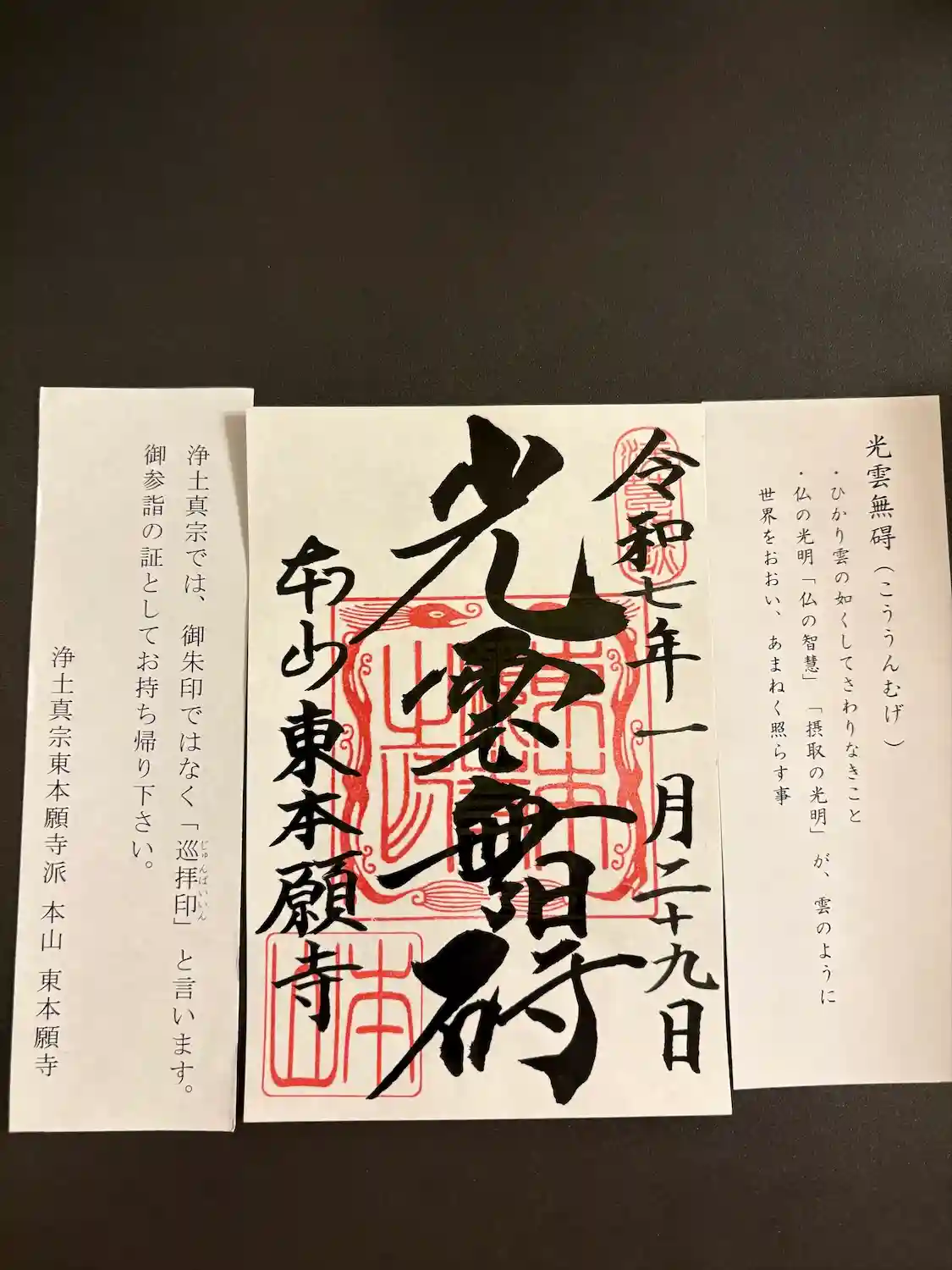 雨の東京寺社めぐり④『東本願寺』参拝 御朱印のかわりに巡拝印 「光雲無碍 (ひかり雲のごとくにして…