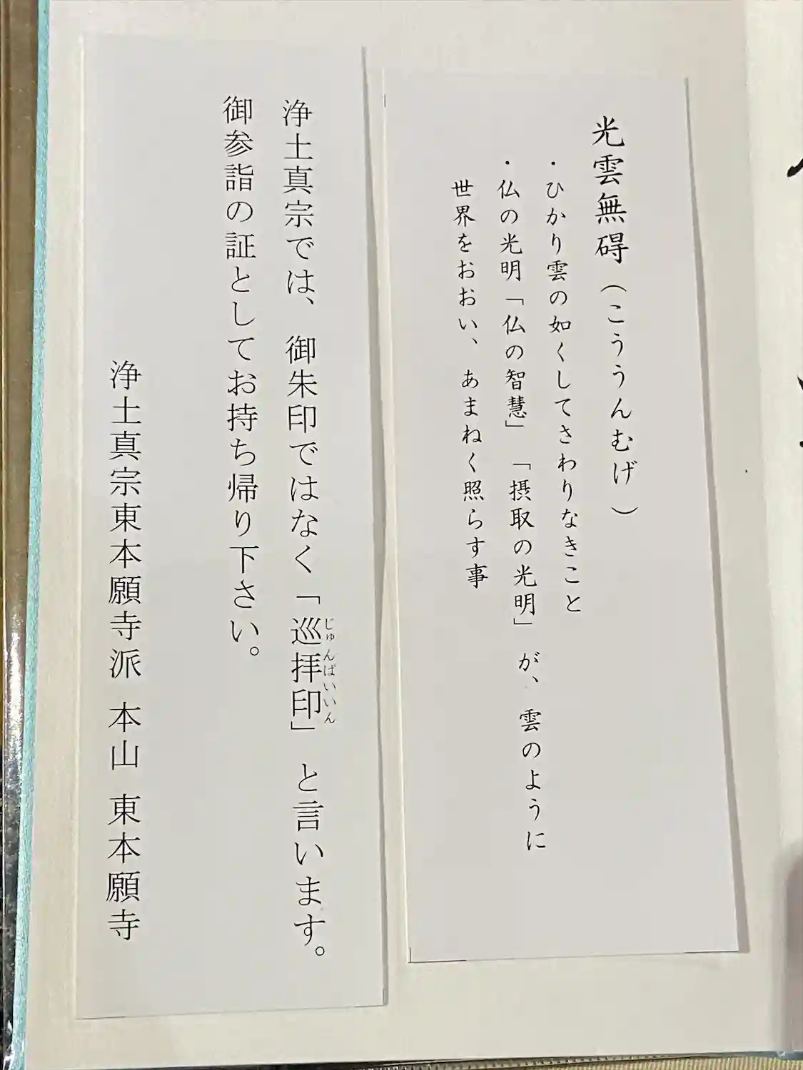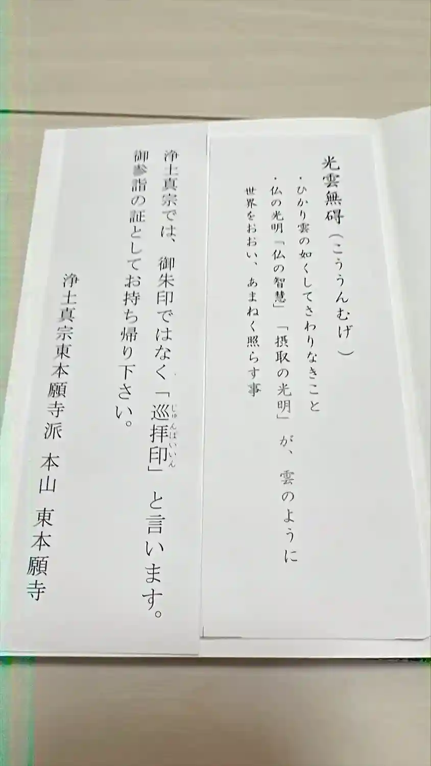 お書き入れして頂いた言葉の意味は、仏の光明が雲のように世界を覆い…
