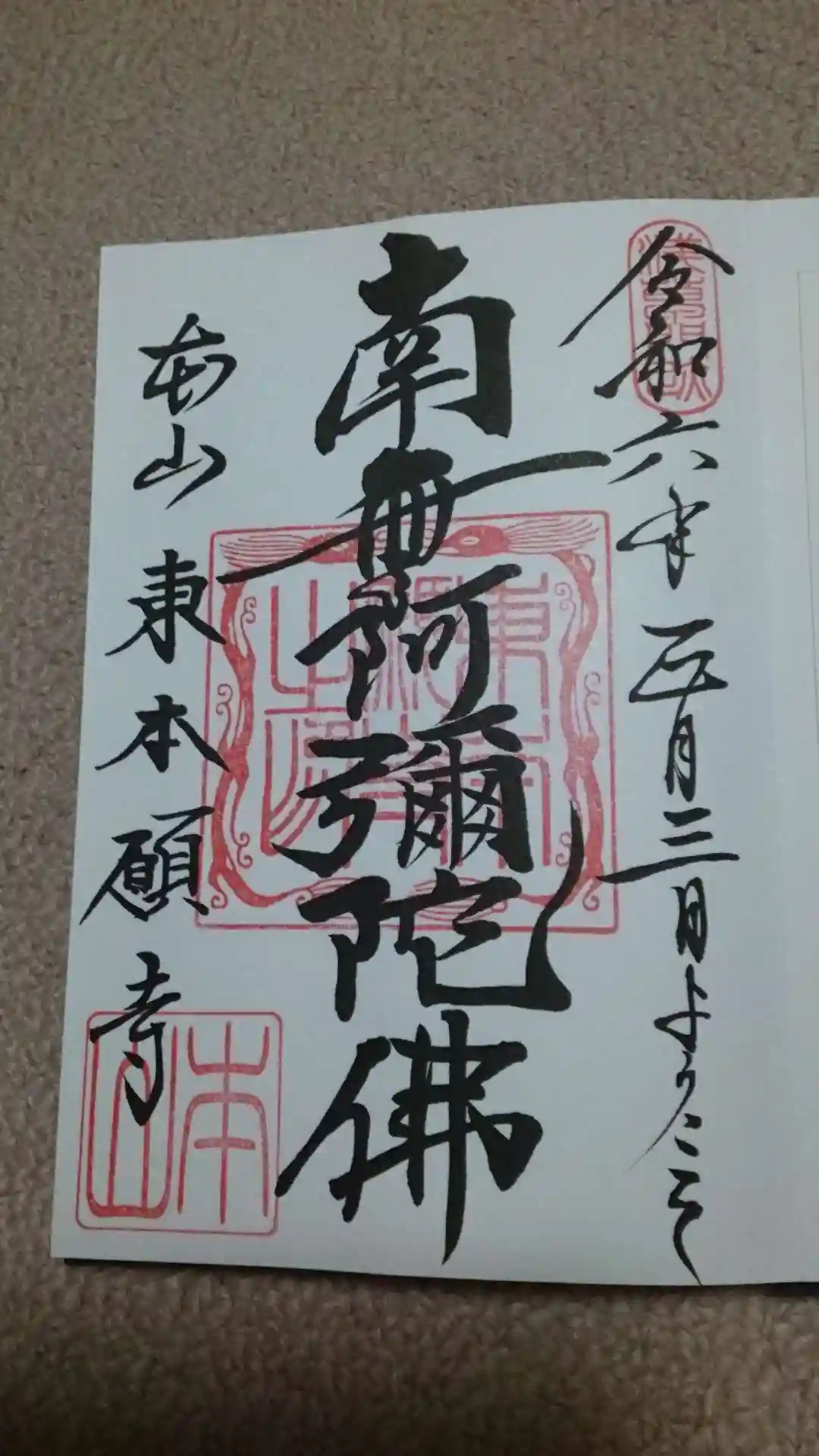 東本願寺の御朱印です