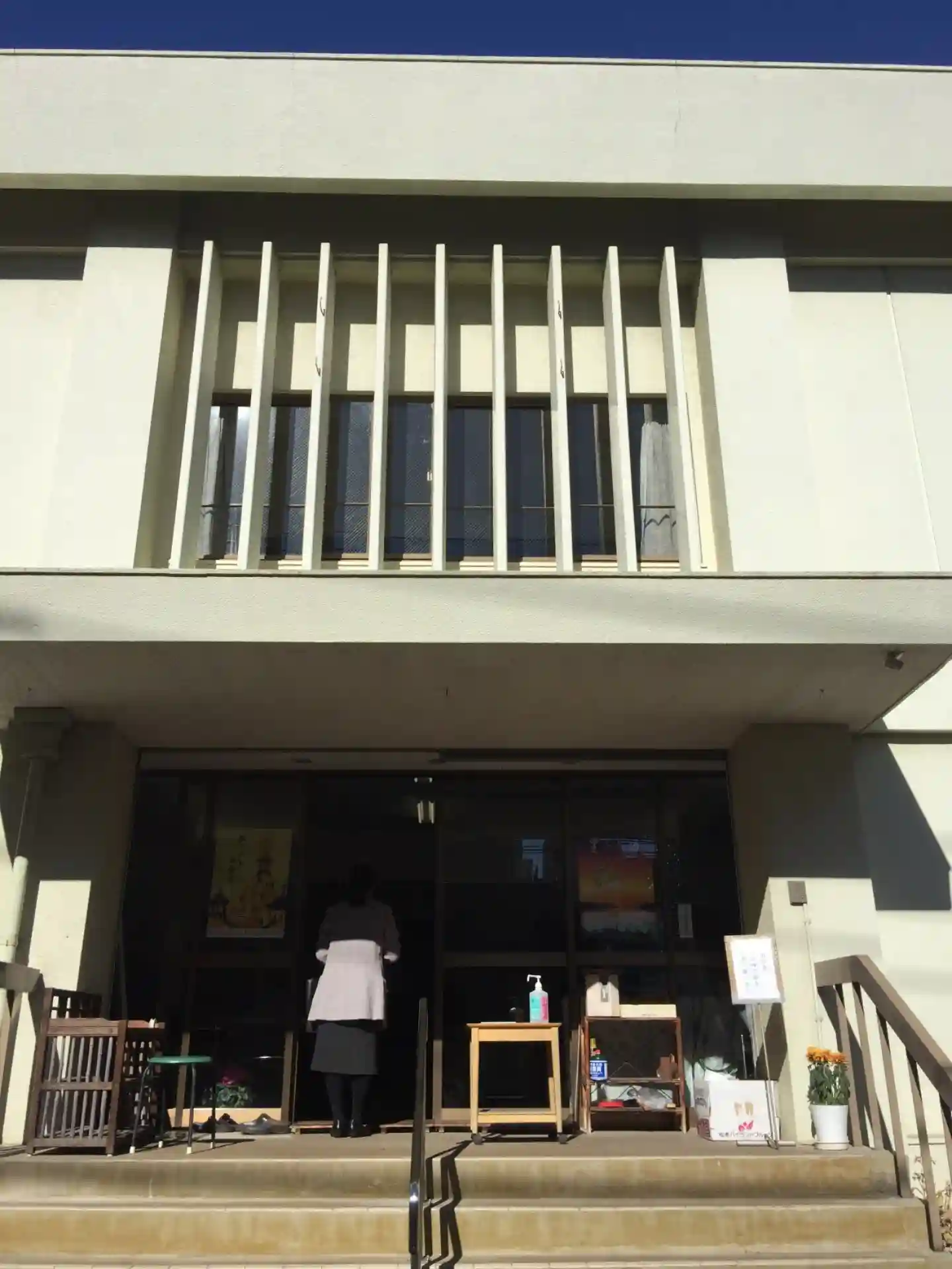 「2階が本堂ですのでどうぞ」