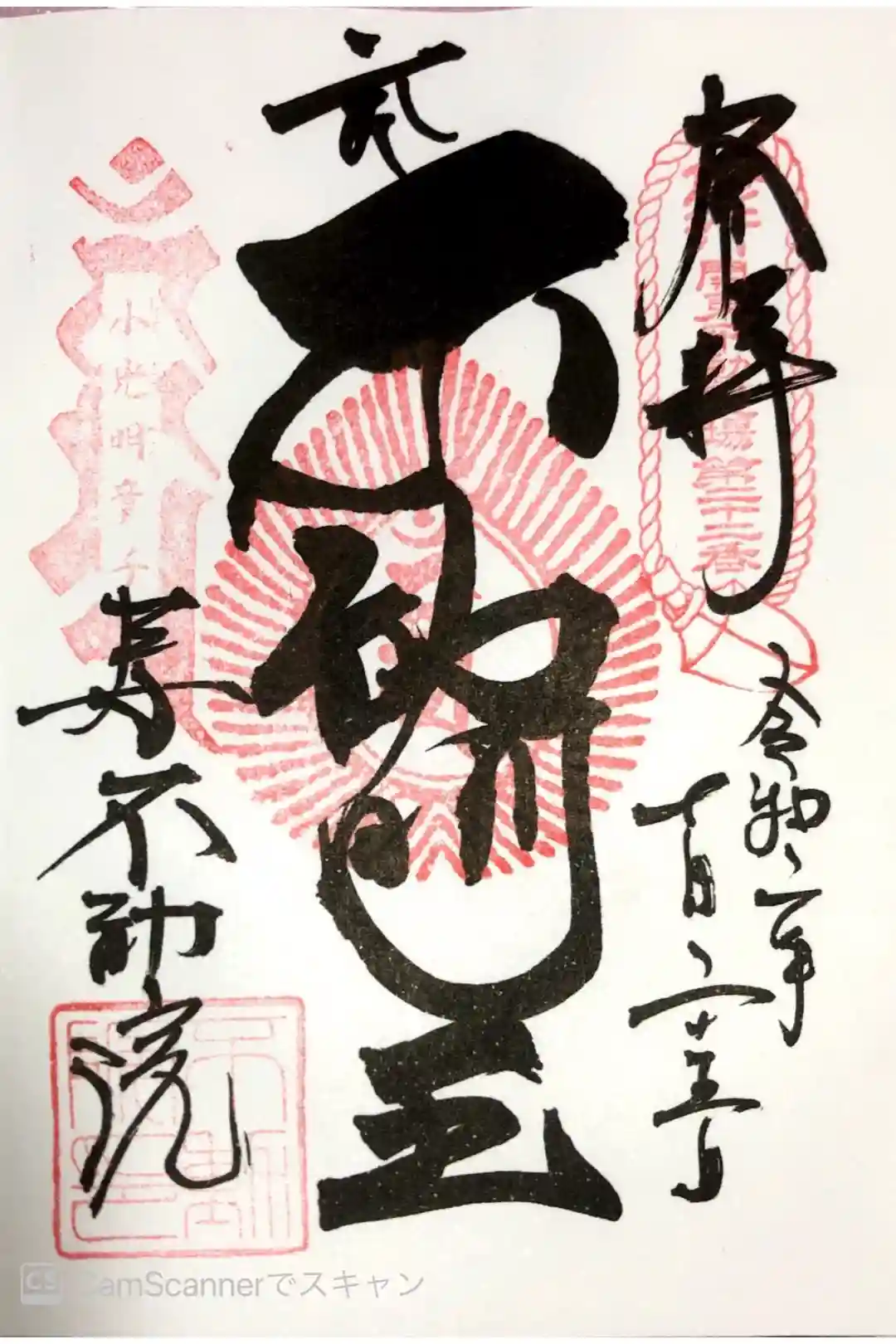 不動明王 直書き御朱印です。