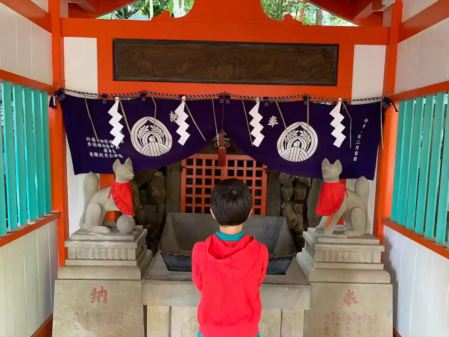 If you take the path through the tunnel of torii that begins on your left after crossing the bridge, you will come across a pile of about half a dozen rocks placed somewhat randomly and fenced off. This is the Enazuka or "Placenta Mound" containing the afterbirth of Tokugawa Ienobu (1662 – 1712), the sixth Shogun of Japan.