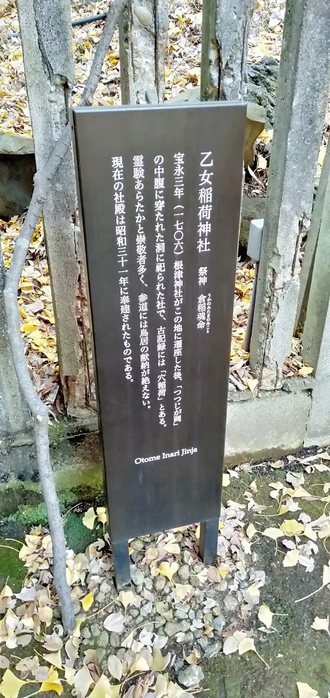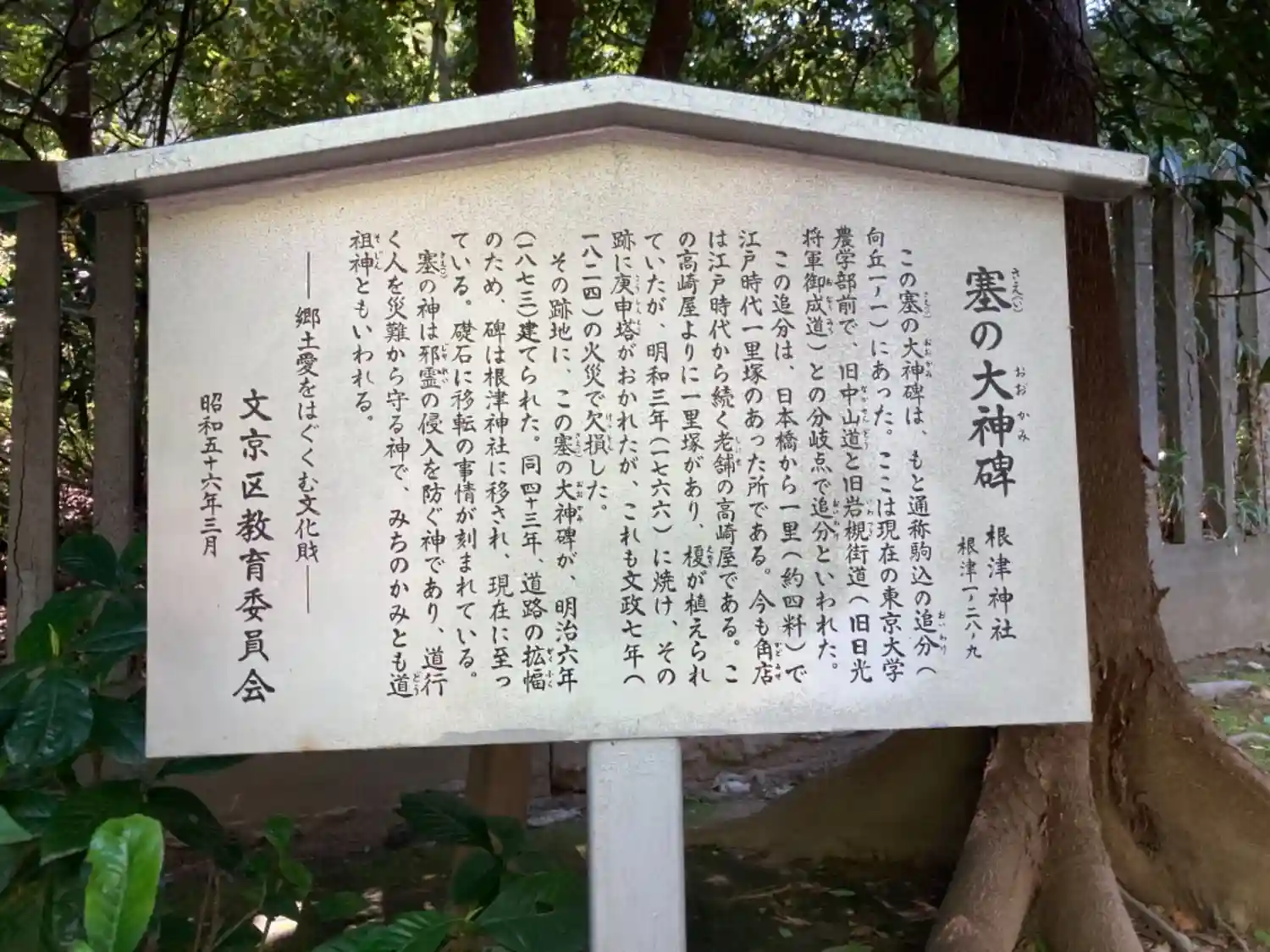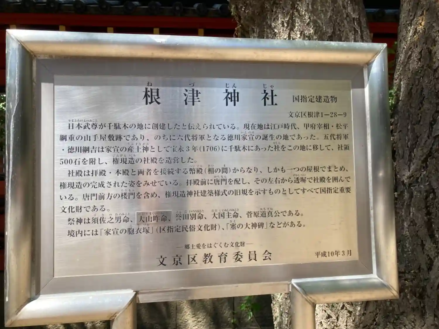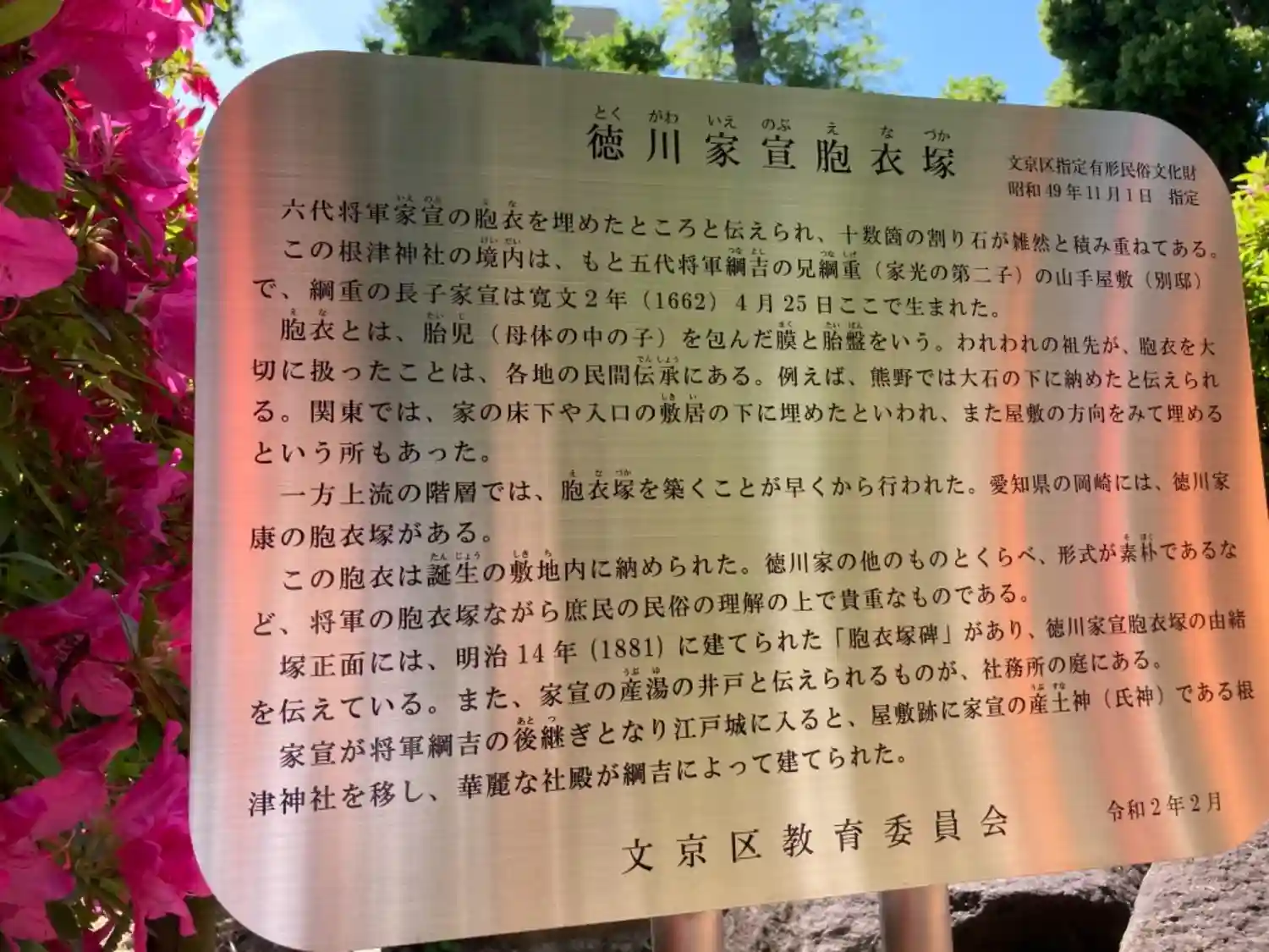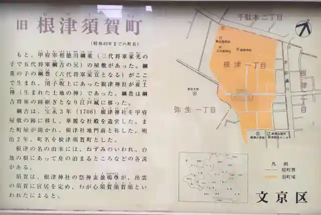 根津神社の由来説明板