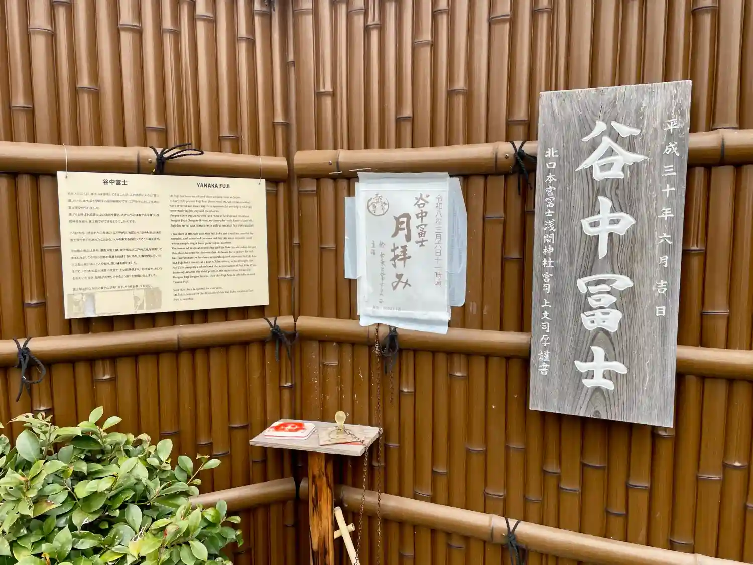| ご由緒 | こちらの富士塚はギャラリーでアンティークショップでもある千寿庵の方が昭和初期に長屋を修繕する際に敷地内にこの富士塚があることを知り、北口本宮富士浅間大社宮司より『谷中富士』という名前をいただいたそうです。