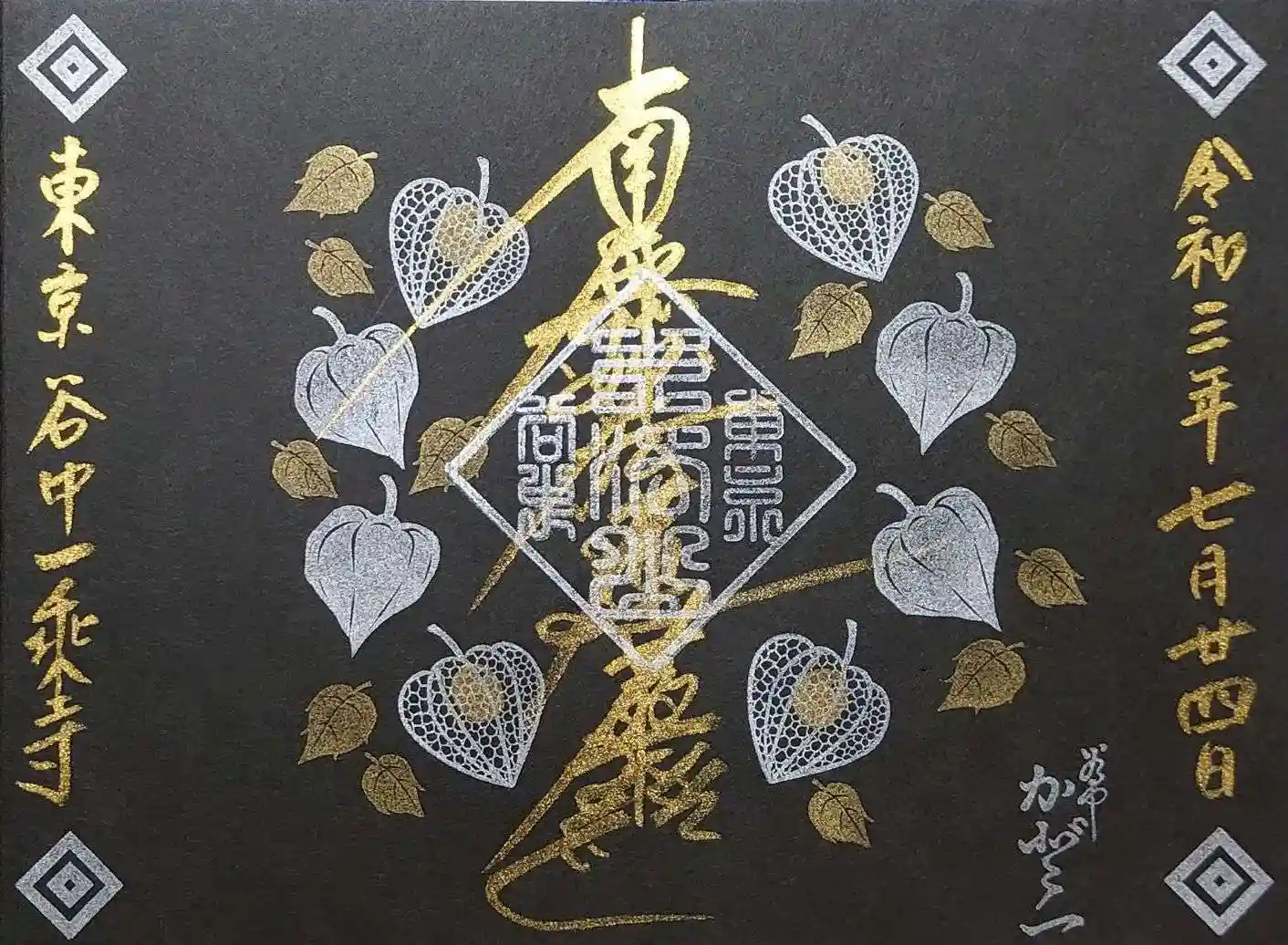 黒和紙に金文字、銀印、銀の鬼灯です。