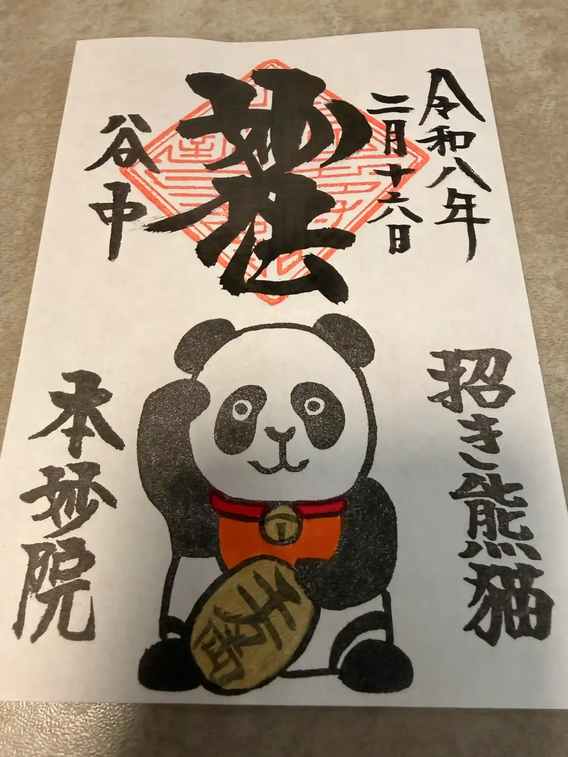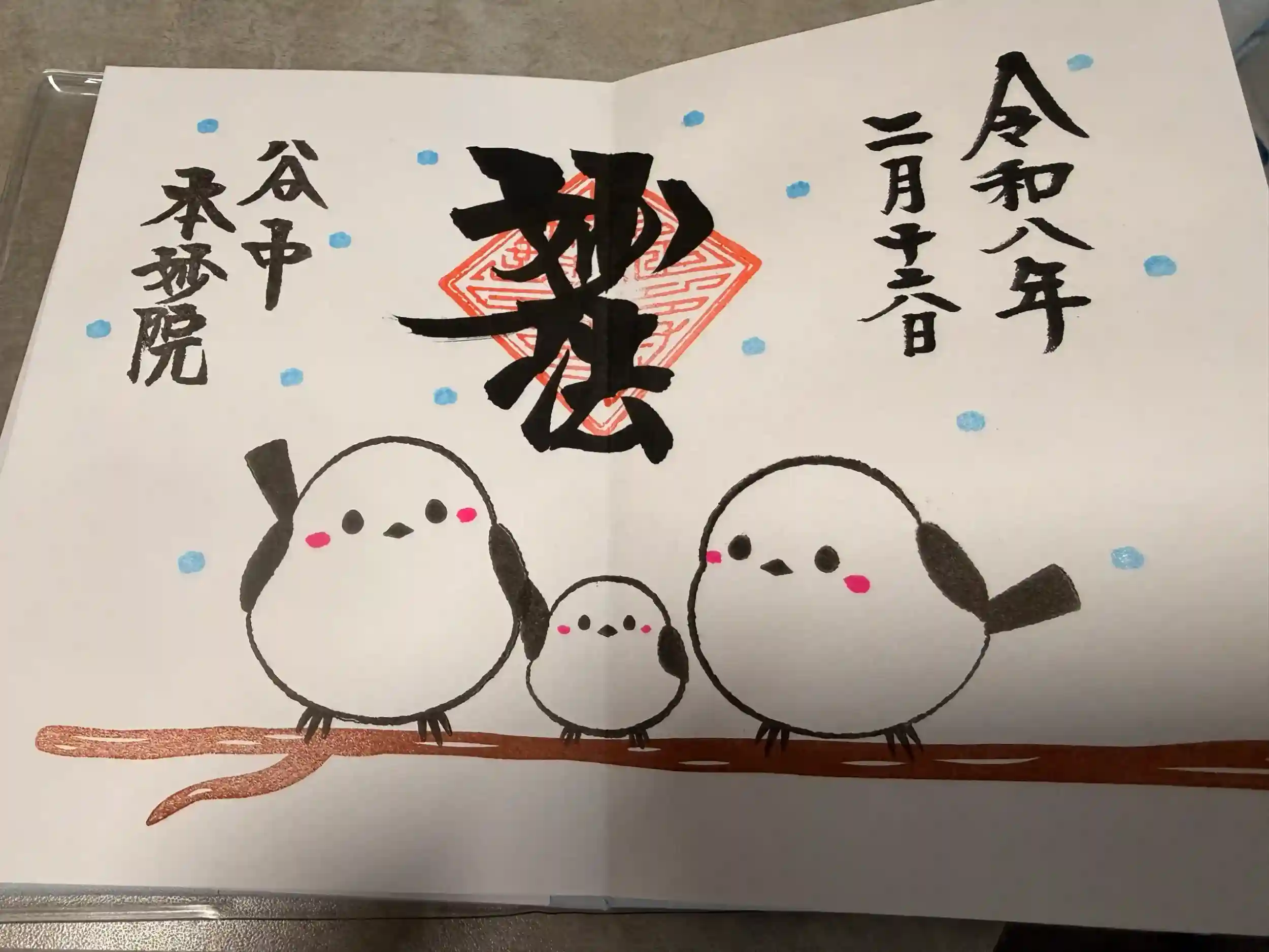 シマエナガの御朱印書き入れてもらいました。パンダとお猫様の書き置きも頂きました。