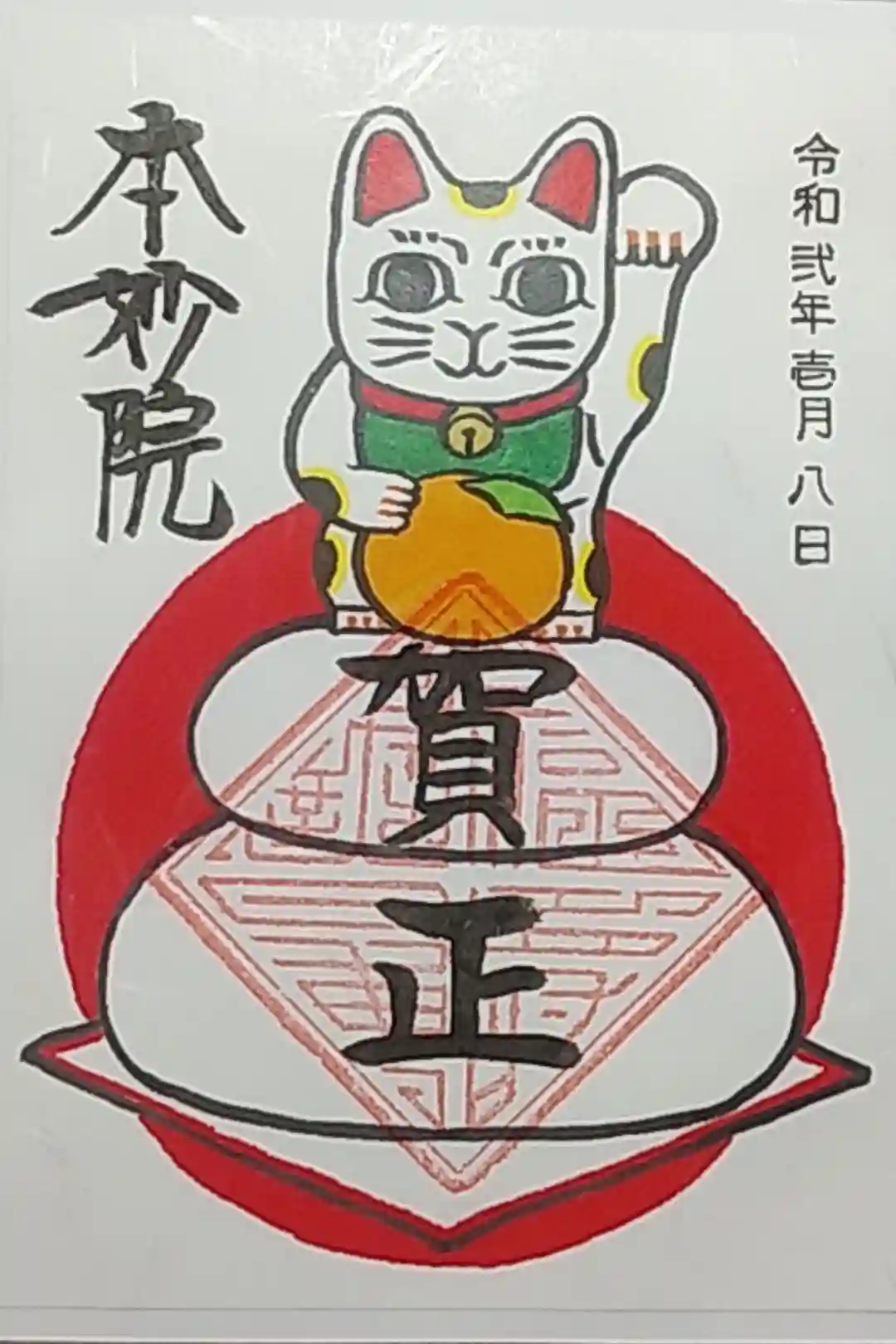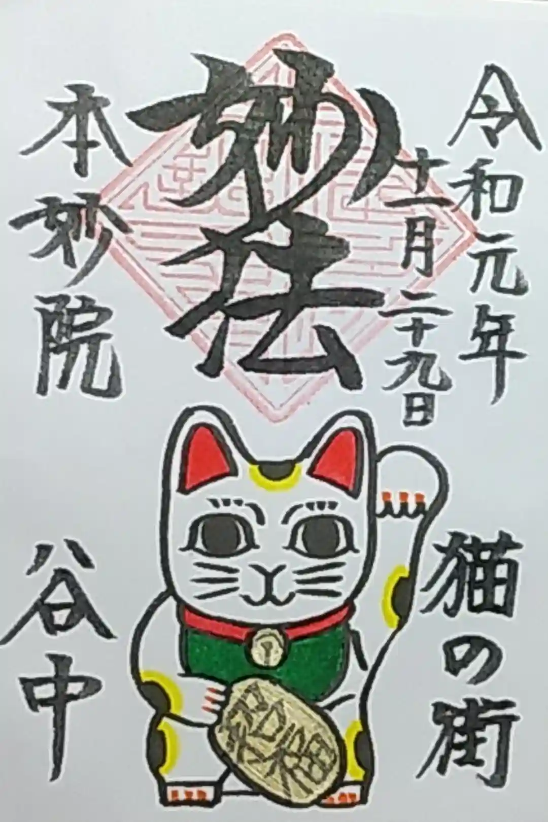 御首題を書き入れて下さっている時に、「今日の御朱印の(招き猫の)手はどちらですか?」と尋ねた所、右手とのことだったので、御朱印も頂きました。