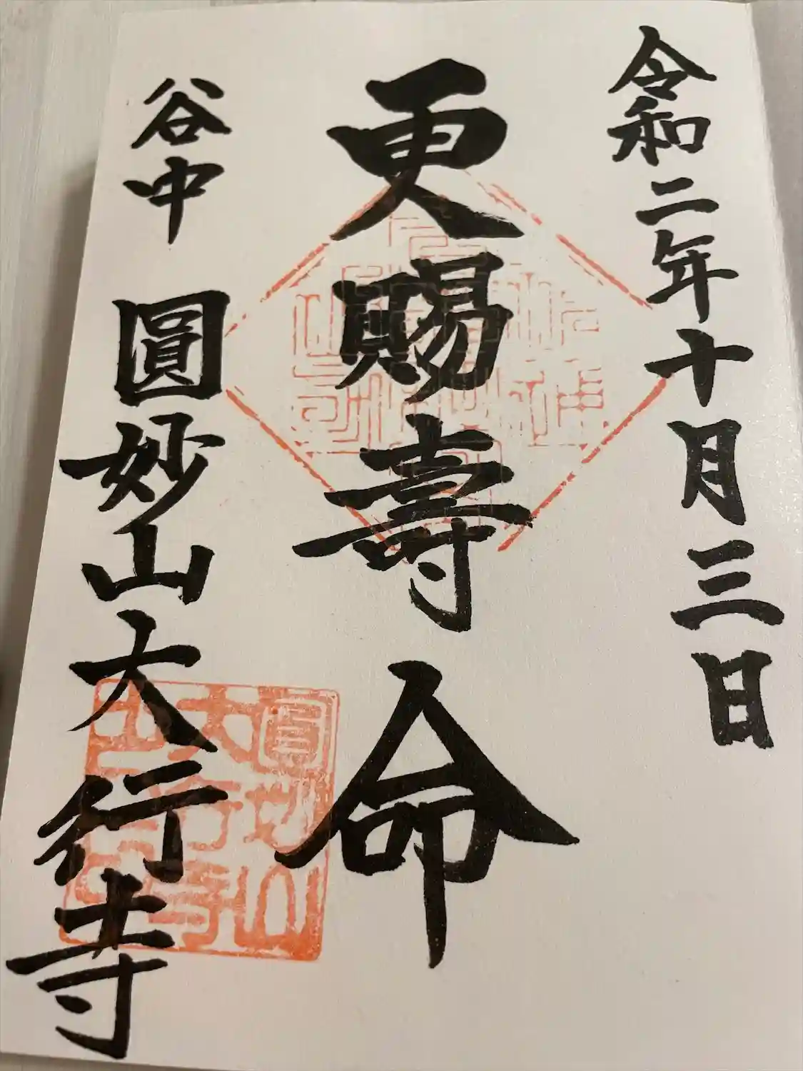 若いお坊さんに御首題を丁寧に書いて頂きました。