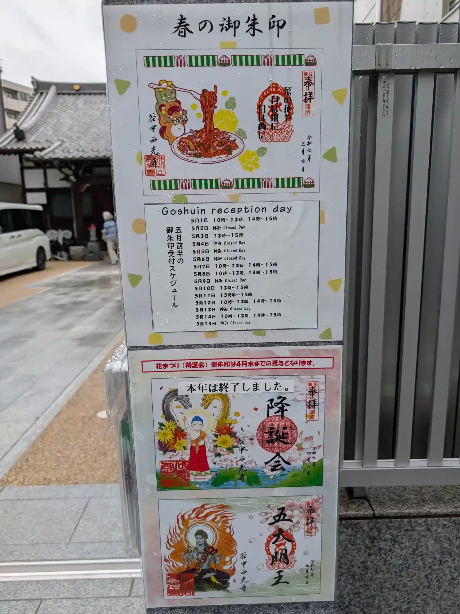 西光寺に参拝。五大明王の大判の書置き御朱印をほしかったのですが、この日は書置きもお休みとの張り紙が…