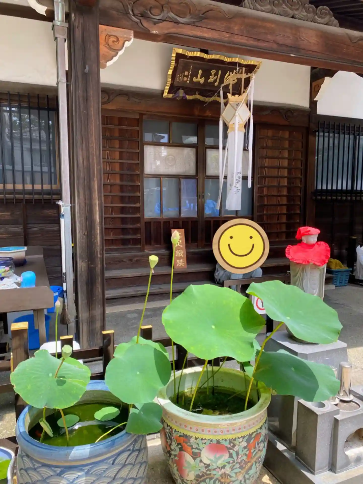 本堂の目の前には花手水が置かれていました。鮮やか🌺