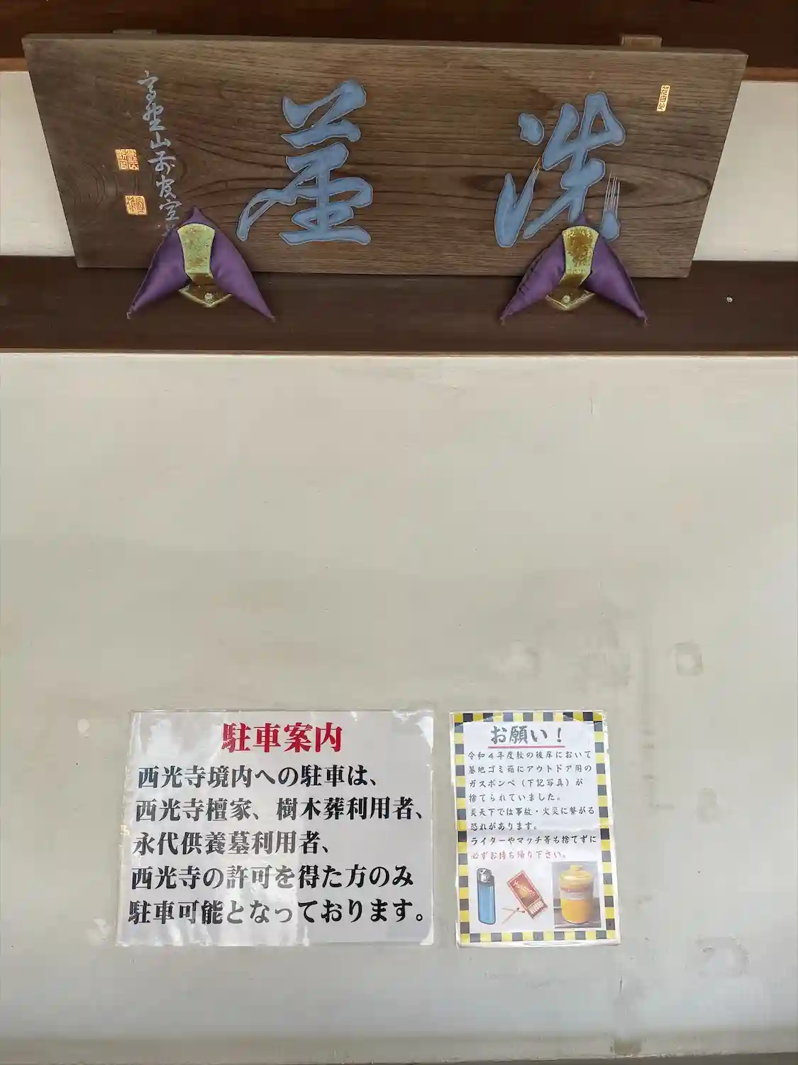 境内には駐車ご遠慮くださいとのこと(檀家さんが停められなくなるため)。