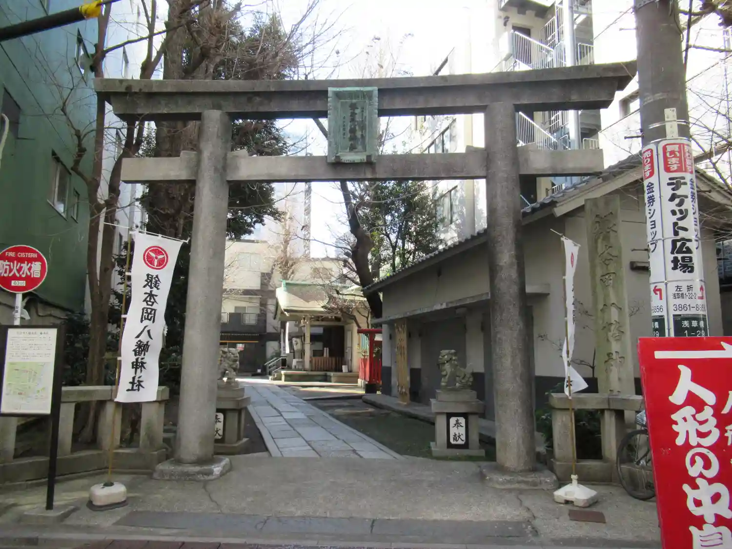 浅草橋界隈、本日1社目。総武線浅草橋駅を降りてすぐ着きました。鳥居付近を修繕工事していたため、脇の…