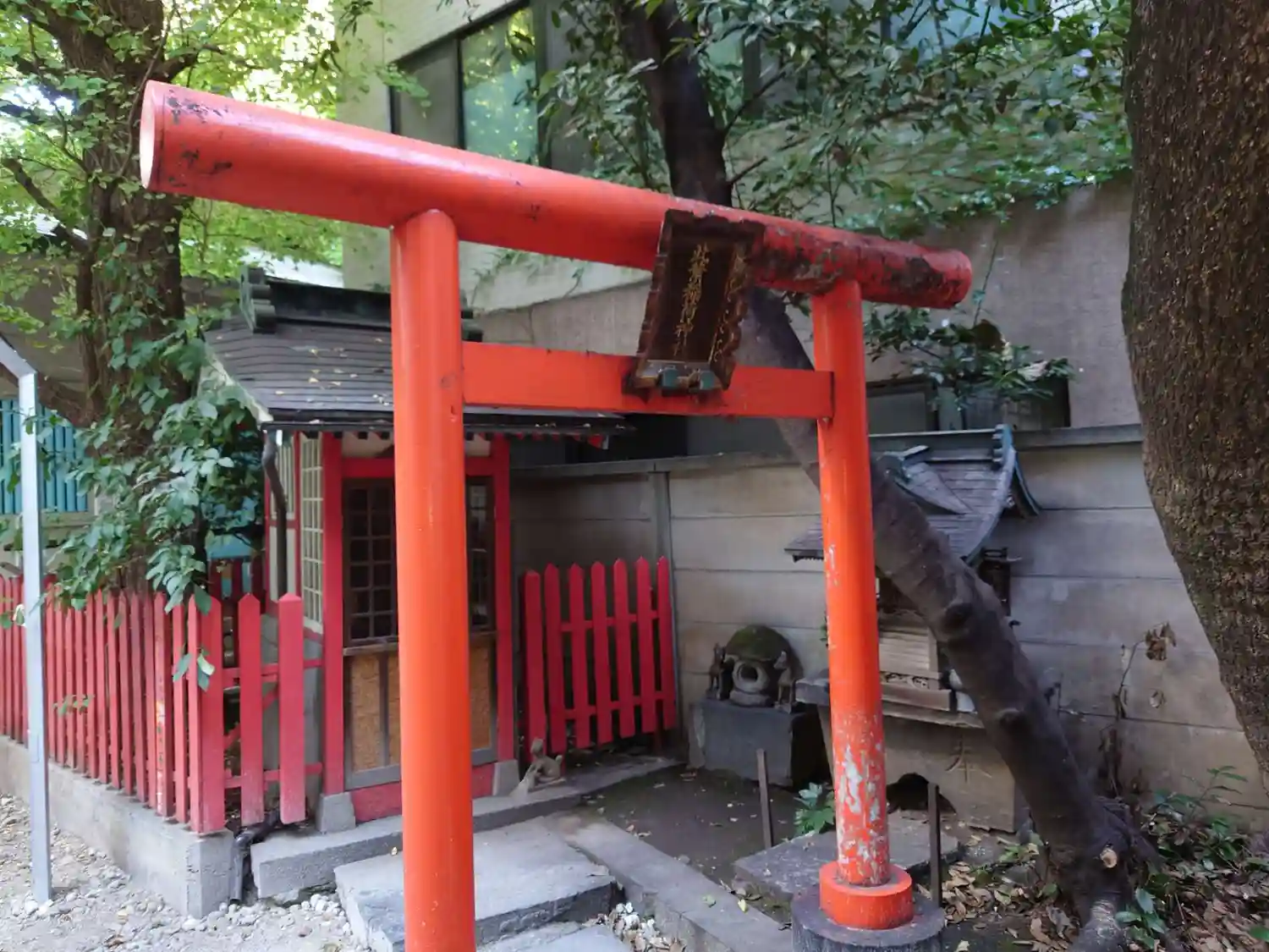境内社の此葉稲荷神社。赤い鳥居にツヤがあります。