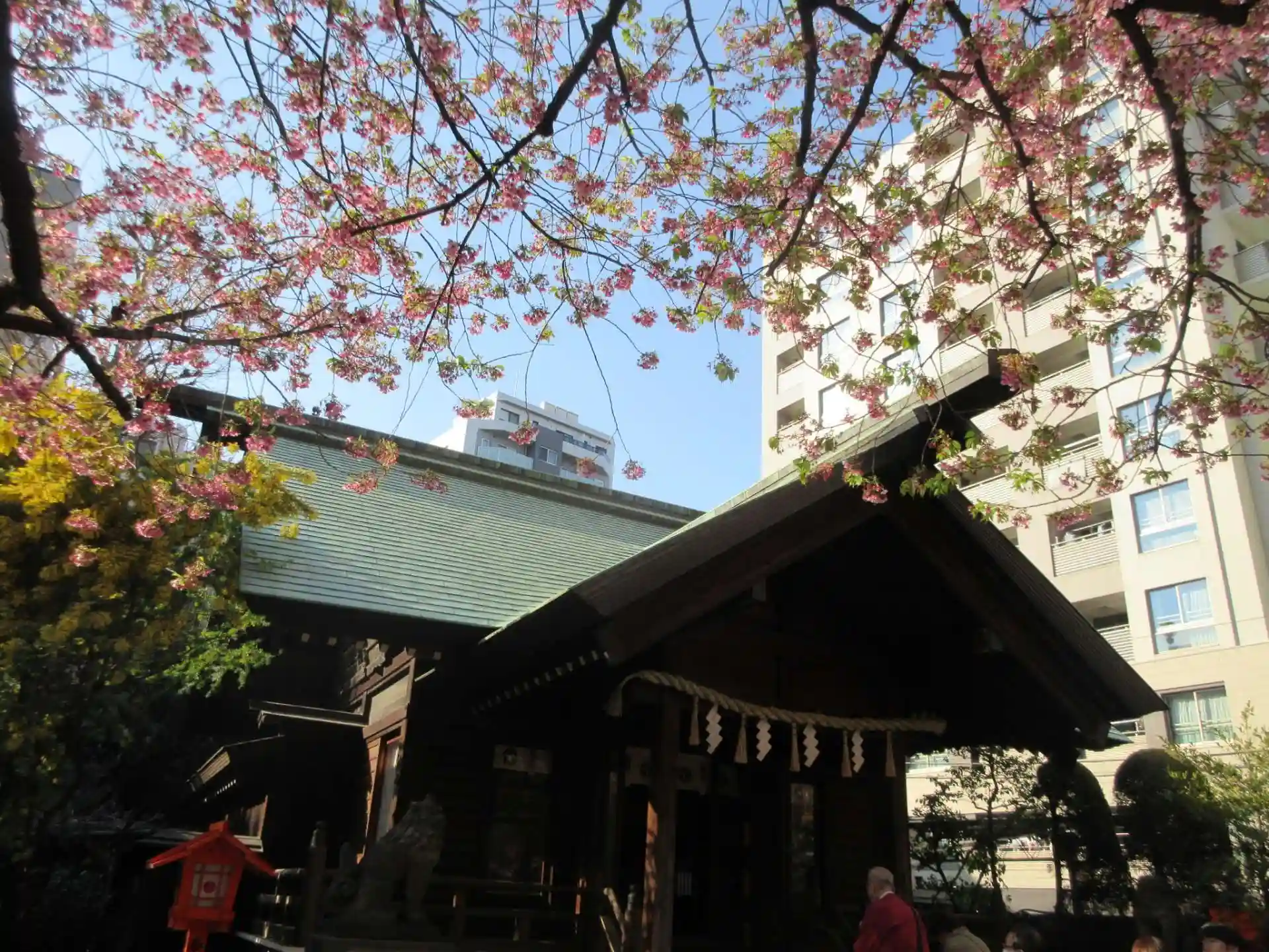 右手に蔵前神社が見えたのでお参り。既に社務所は閉まっている。結構たくさんの人が集まっているのでどうしたのだろう?と思ったら、河津桜に加えてミモザが咲いていて、それをみんなが撮影しているのだった。