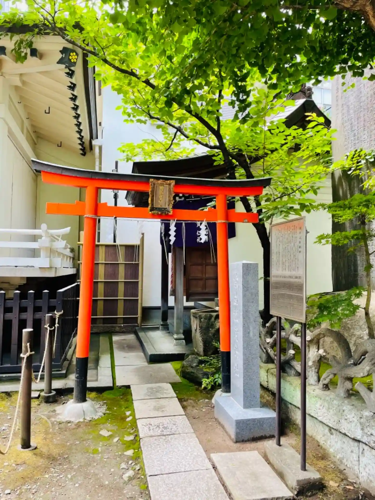 大通りから一本入った道にあります。静かで心が穏やかになるような緑の多い境内です。