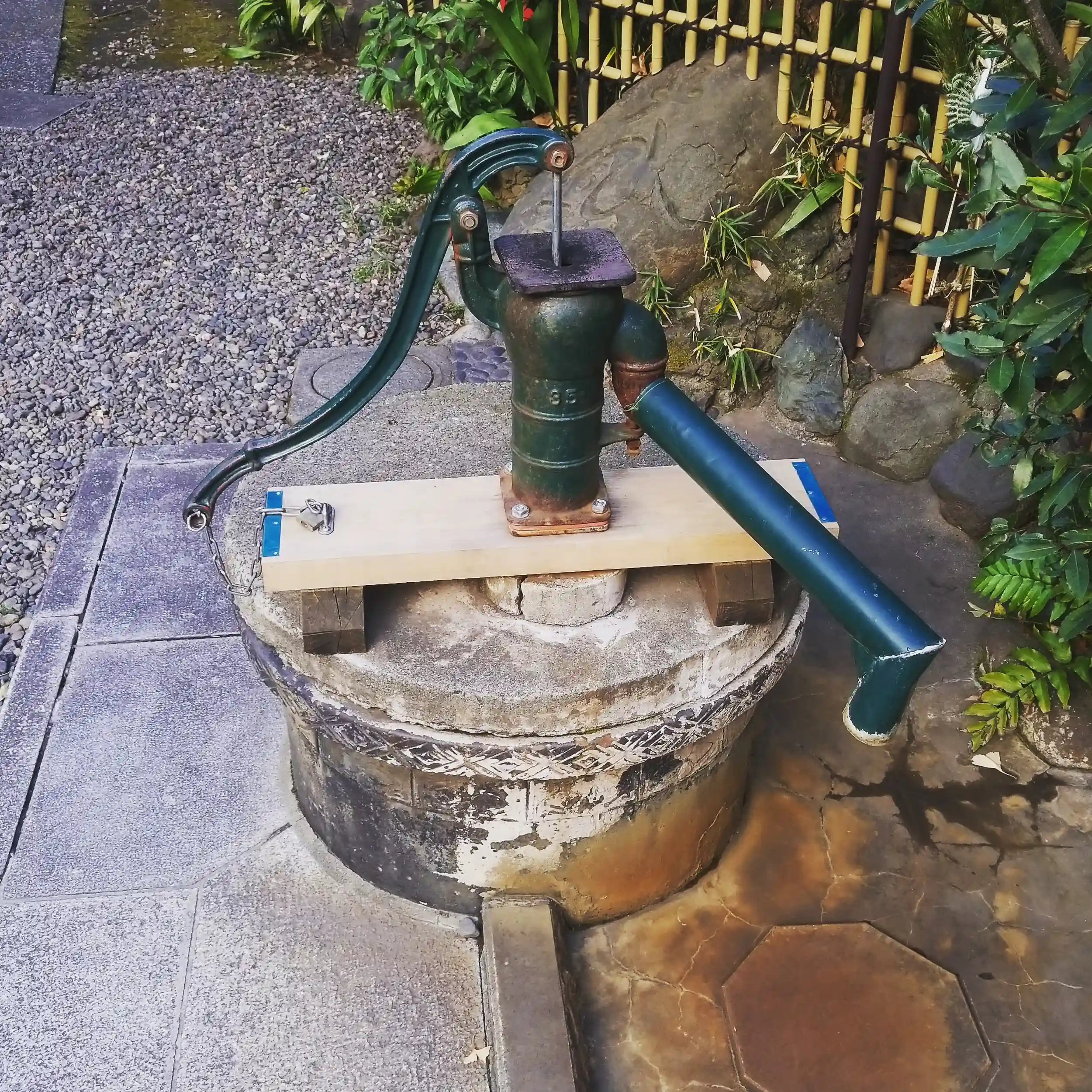 「ジャギーさん、粋な手水鉢ですね」