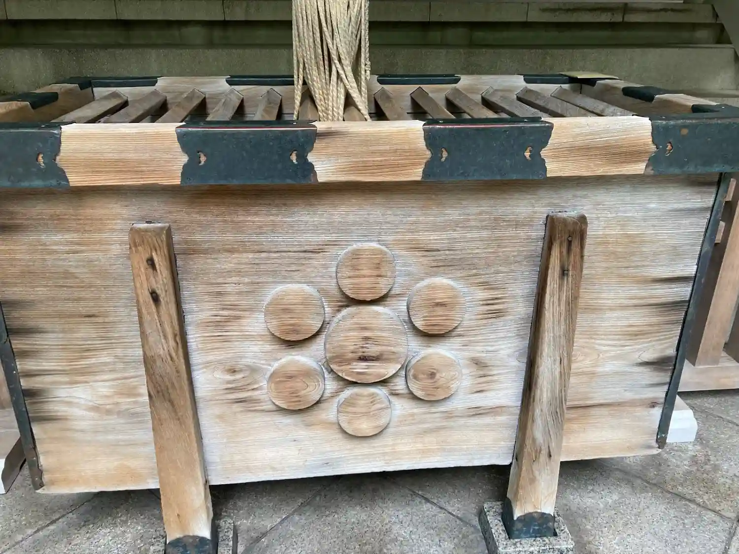 賽銭箱には社紋でもある七曜紋