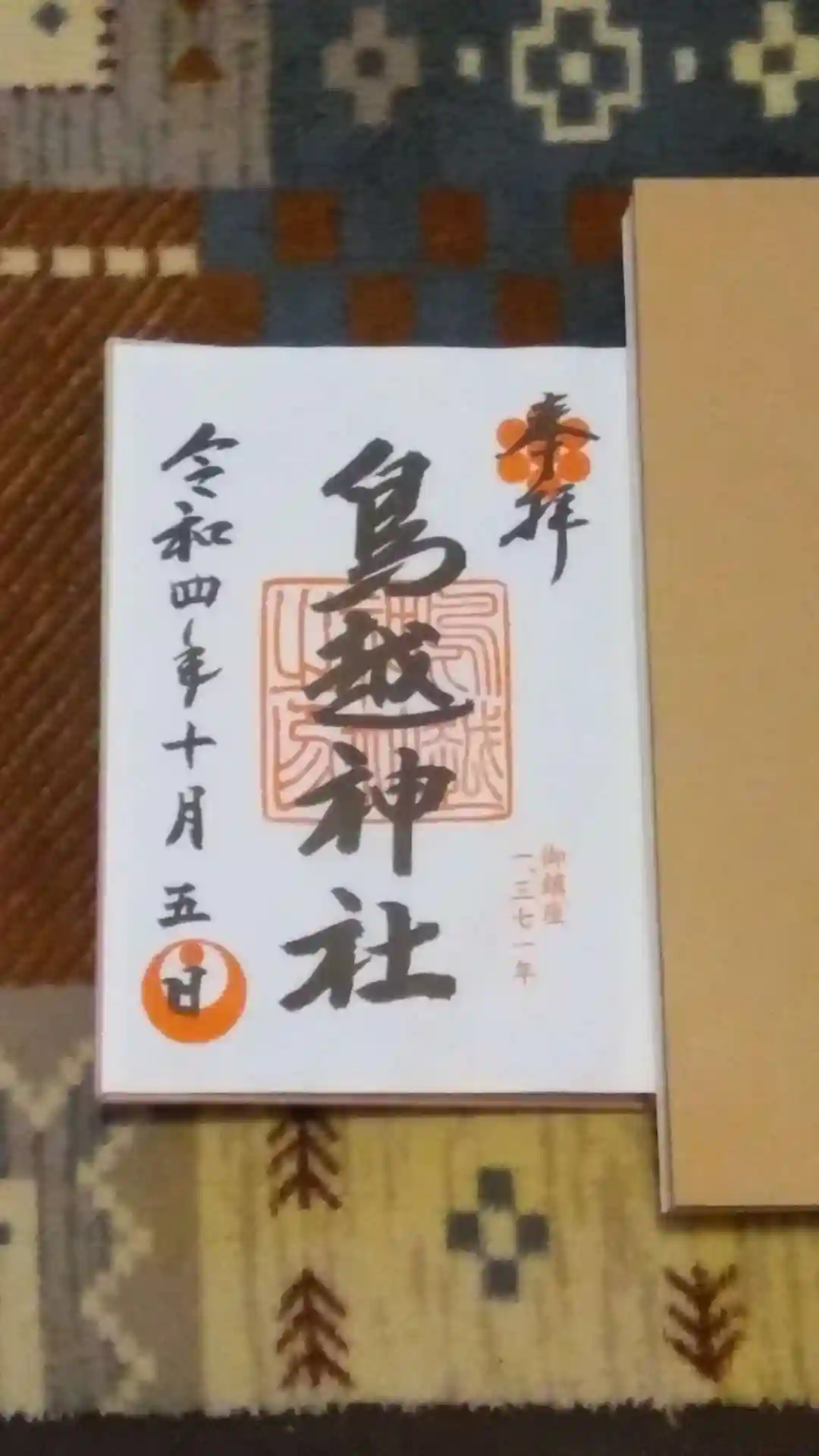 須賀神社から最後はこちらの神社に行きました。御朱印帳を見てたら、自分では行ったか覚えてないのですが御朱印がありました。 投稿した次の日に探したら、平成31年(2019年)にパワースポット巡りで行っていました。