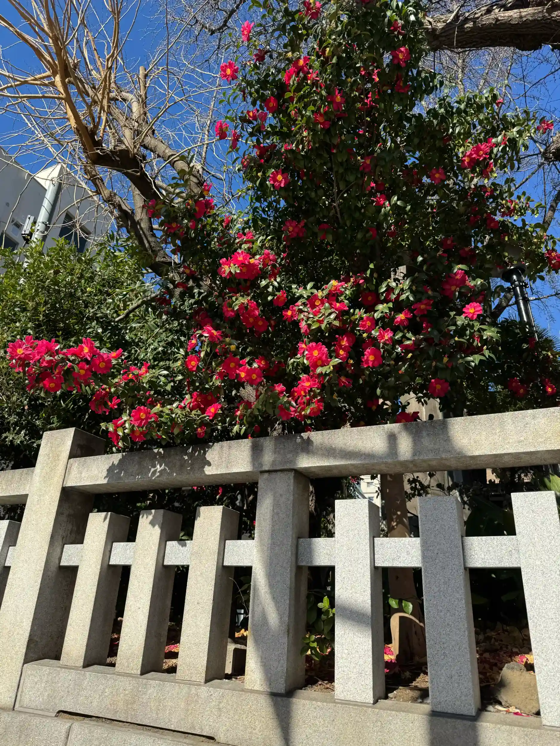 通り側から山茶花が咲いているのが見えました。