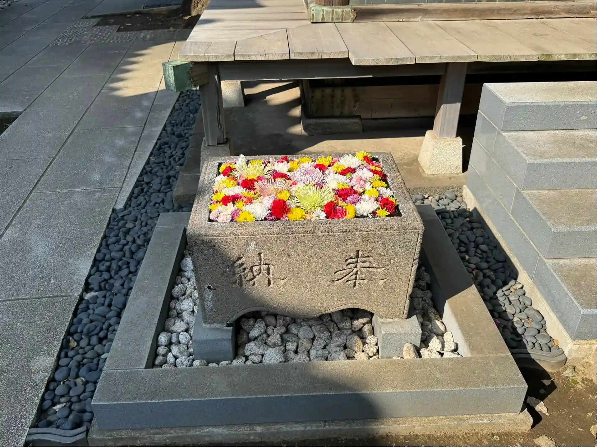 菊の花を浮かべた花手水もあり、素敵なお寺でした。
