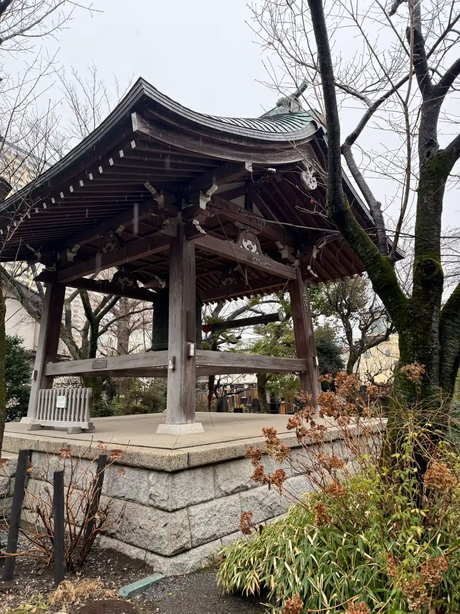 西日暮里の静かな高台に位置する養福寺を訪れると、まず江戸時代からその姿を留める仁王門が迎えてくれます。門に掲げられた大きな草履は、旅人の足の健康を願う信仰の象徴であり、その圧倒的な存在感に身が引き締まる思いがします。境内へと進めば、初春の風に揺れる寒緋桜が鮮やかな濃いピンク色の花を咲かせ、古式ゆかしい木造建築に彩りを添えていました。如意輪観音様の慈悲深いお姿を象徴するかのような、うつむき加減に咲く寒緋桜の美しさと、仁王門に掲げられた大草履の力強さ。その対照的な情景は、日暮里の街の喧騒を忘れさせ、心穏やかなひとときを与えてくれました。