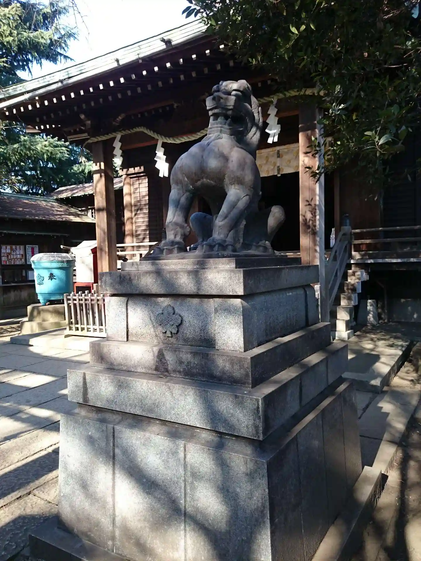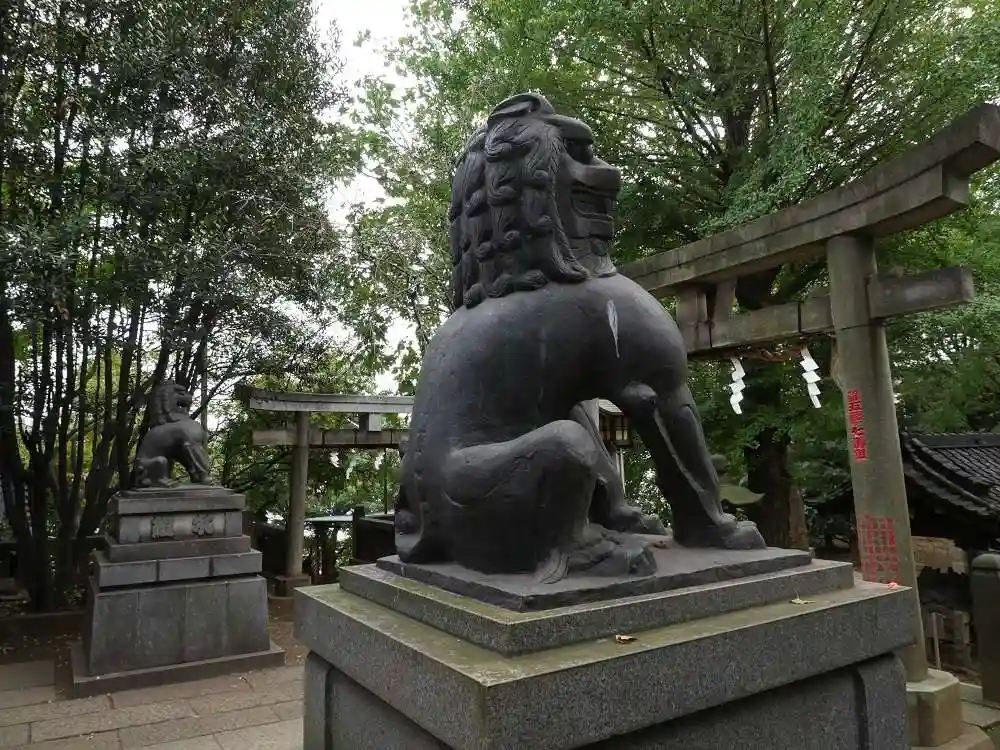 本殿の前の狛犬がユニークで目を引きました。谷中はお寺は多いのですが、神社は少ないように感じます。