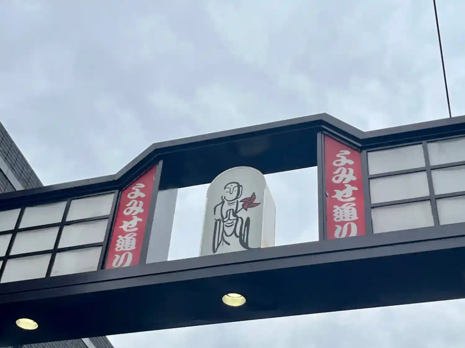 よみせ通りのアーチにはお地蔵さんが描かれています