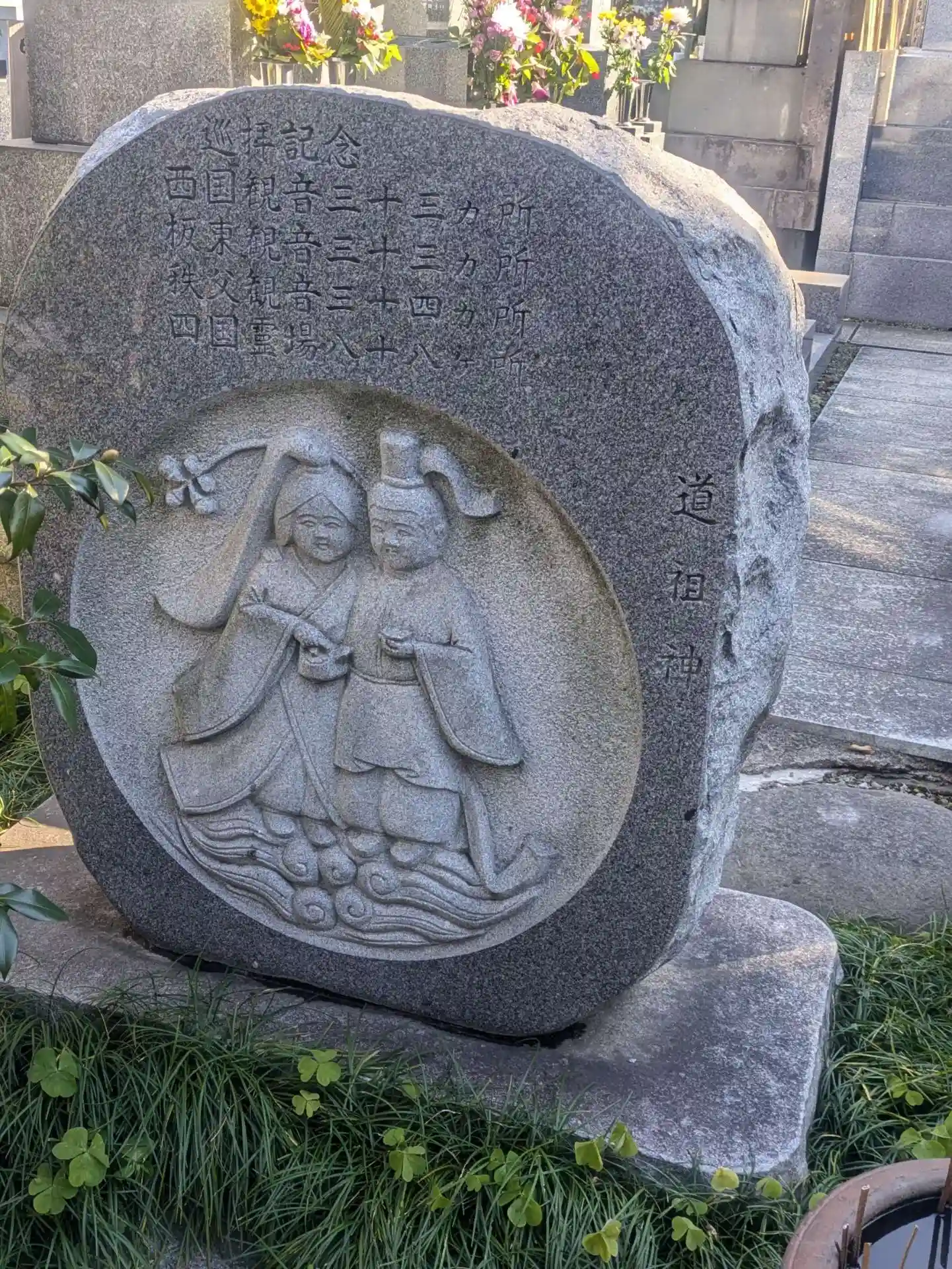 「うすさま明王石像」この石像は荒川区登録文化財に指定されており、「うすさま」とは梵語で、烏枢沙摩明王(不浄金剛)とも呼ばれ、不浄や障害を取り除く力を持つとされています。像は六臂で火焰を背にし、憤怒の形相をしているのが特徴です。手水場(便所)の神様として信仰されており、その台石には文化14年(1817年)の造像銘が刻まれています。