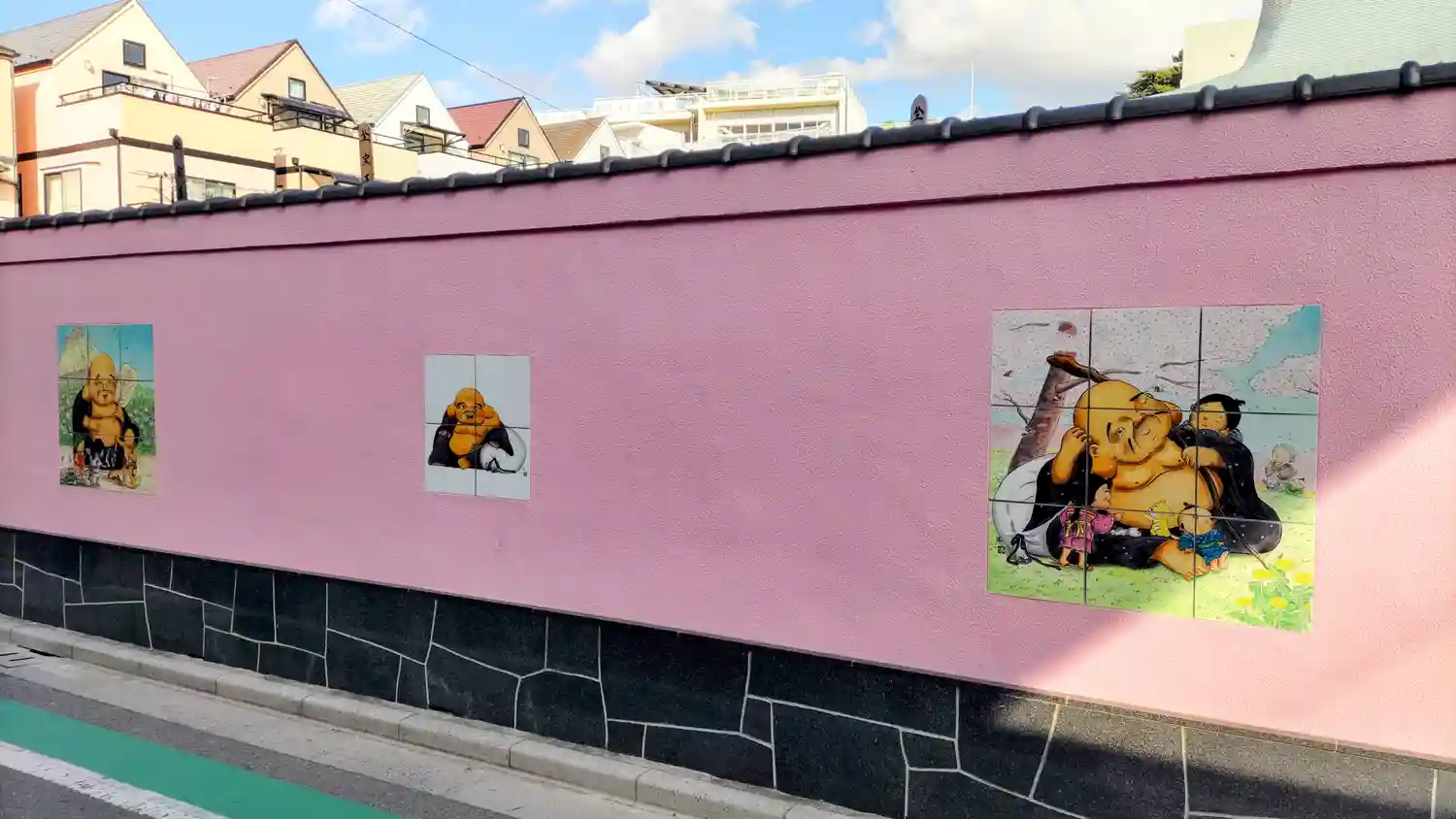 ピンクの壁に布袋さまの絵