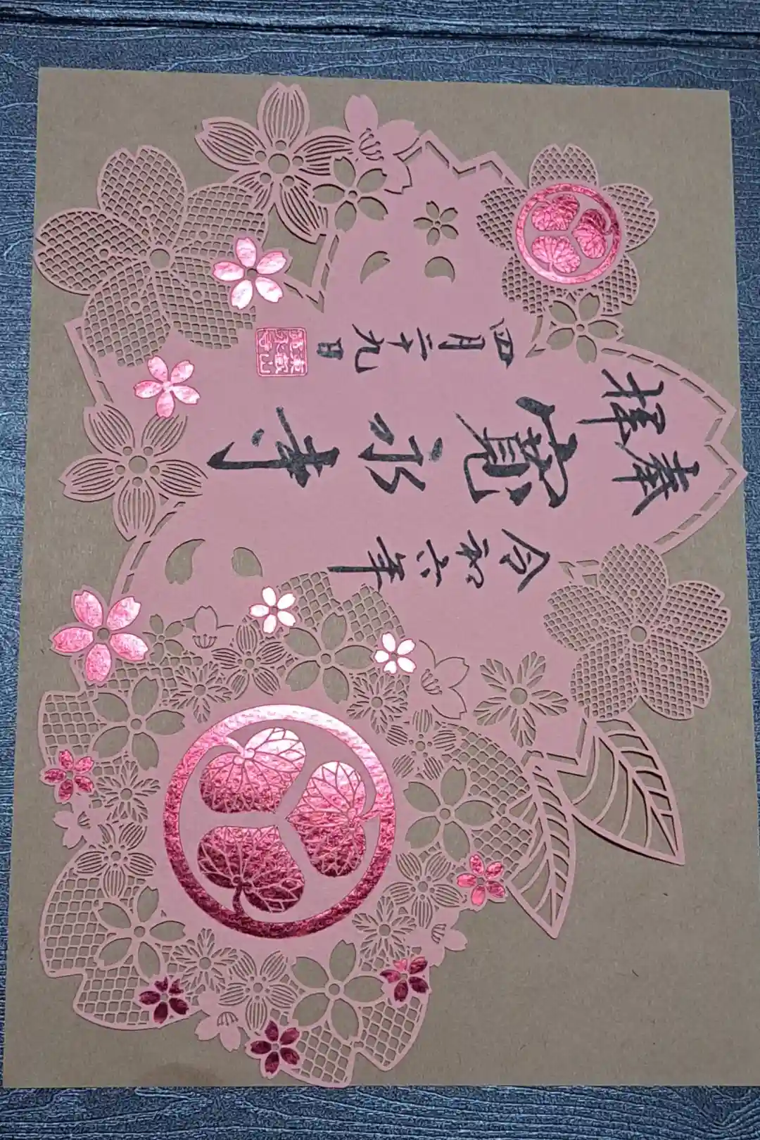 初春限定切り絵。寛永寺所有の陣羽織の模様。1500円